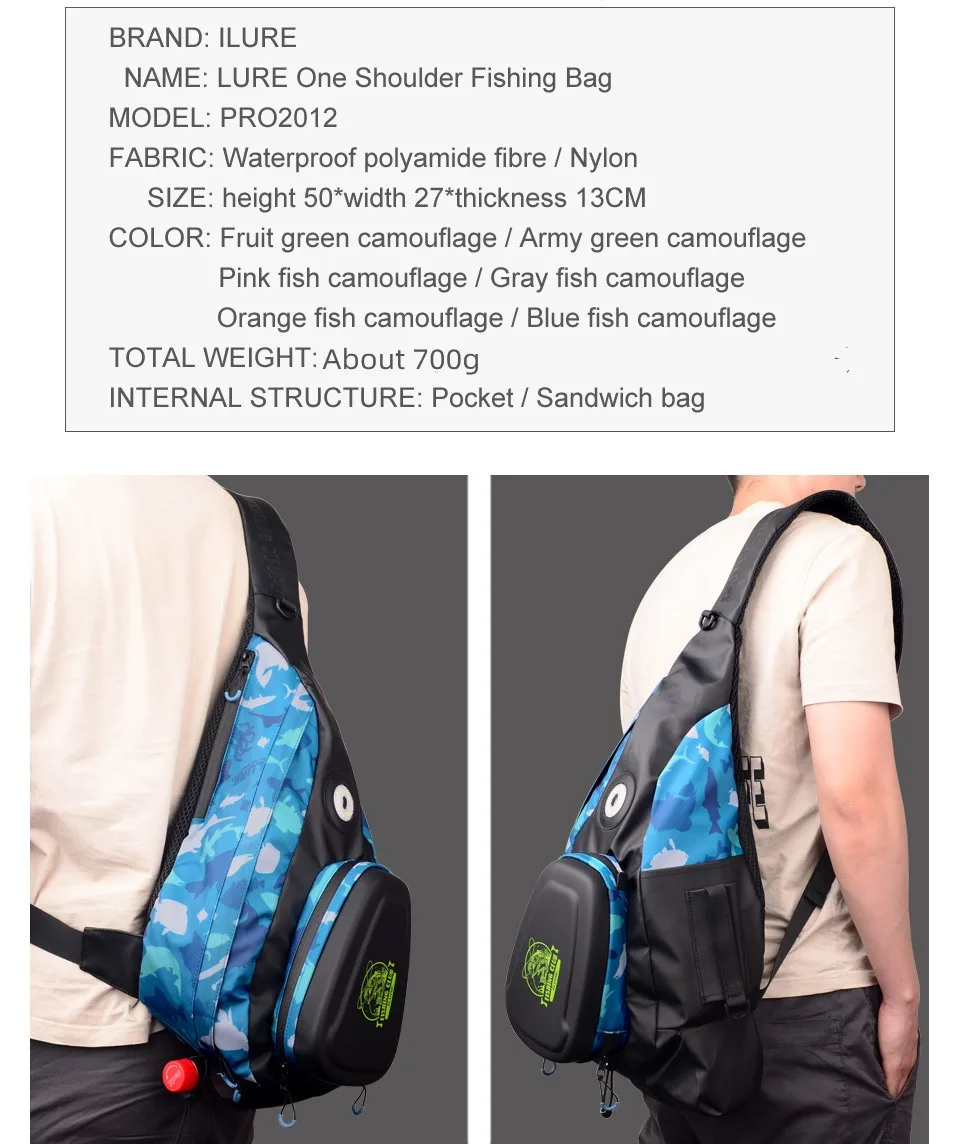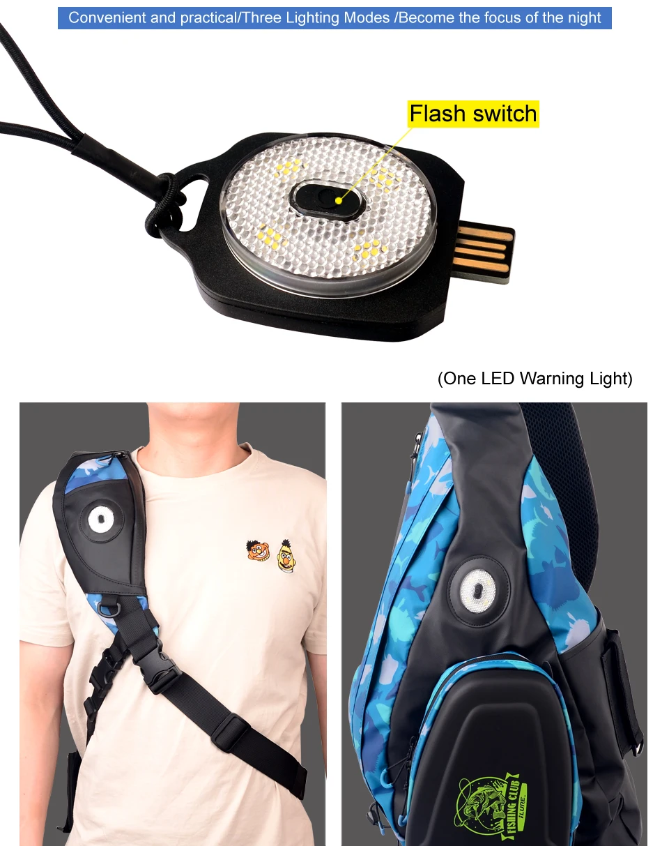 Nuevo bolso de hombro para pesca, bolso cruzado para deportes al aire libre, Señuelos de Pesca, caja de línea, aparejos de almacenamiento, bolsa impermeable con luces LED