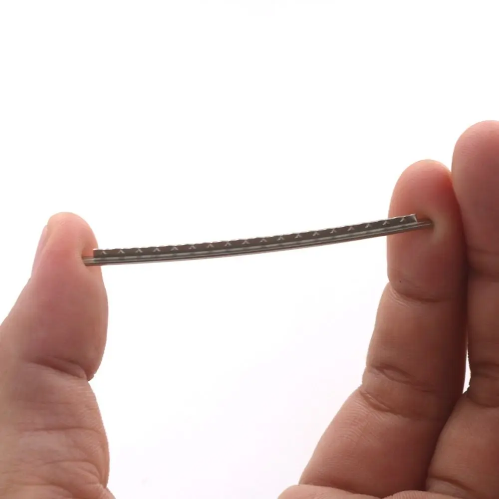 Nombre: Cable de traste de guitarra Colores: plata Ancho: 2. 2 mm (0. 09 pulgadas) o 2. 7 mm (0. 11 pulgadas), altura de la corona:1. 4 mm (0. 06 pulgadas) Materiales: acero inoxidable Características: Cable de traste de guitarra rusa, Radiador: 240 mm (9. 5 pulgadas) Contenido del paquete: 1 juego de 24 piezas de cable de traste de guitarra (solo el contenido del paquete anterior, otros productos no están incluidos). Nota: La luz y las diferentes pantallas pueden hacer que el color del elemento en la imagen sea un poco diferente al real. El error de medición permitido es +/- 1-3 cm.