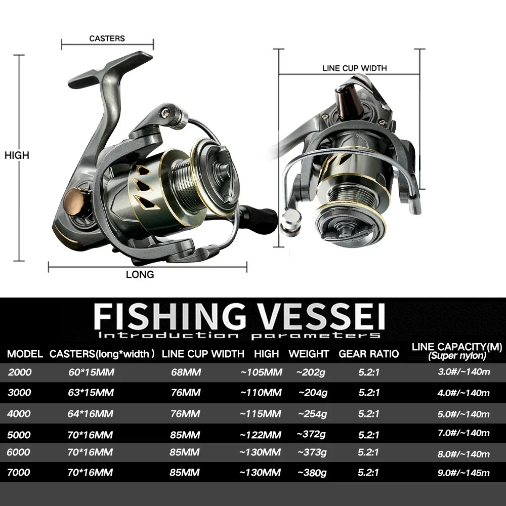 1.Copa de hilo de metal de gran capacidad, resistente y duradera, no se deforma fácilmente y la salida del hilo es suave sin dañar el hilo de pescar.