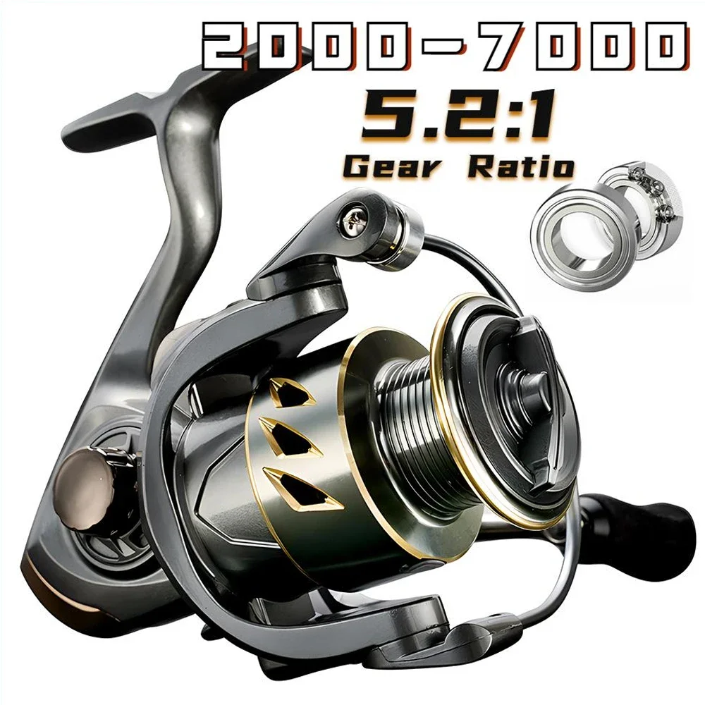 Nuevo carrete giratorio suave Max Drag de 8 KG, carrete de línea profunda de Metal, serie 2000-7000, relación de engranaje de alta velocidad 5,2:1 para agua salada y agua dulce