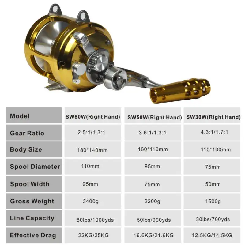 Nuevo carrete de pesca de corrico de Metal de 80w, gran juego, carrete de barco Jigging de paso lento de aguas profundas, lanzamiento largo resistente
