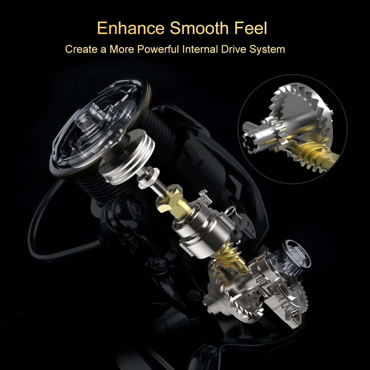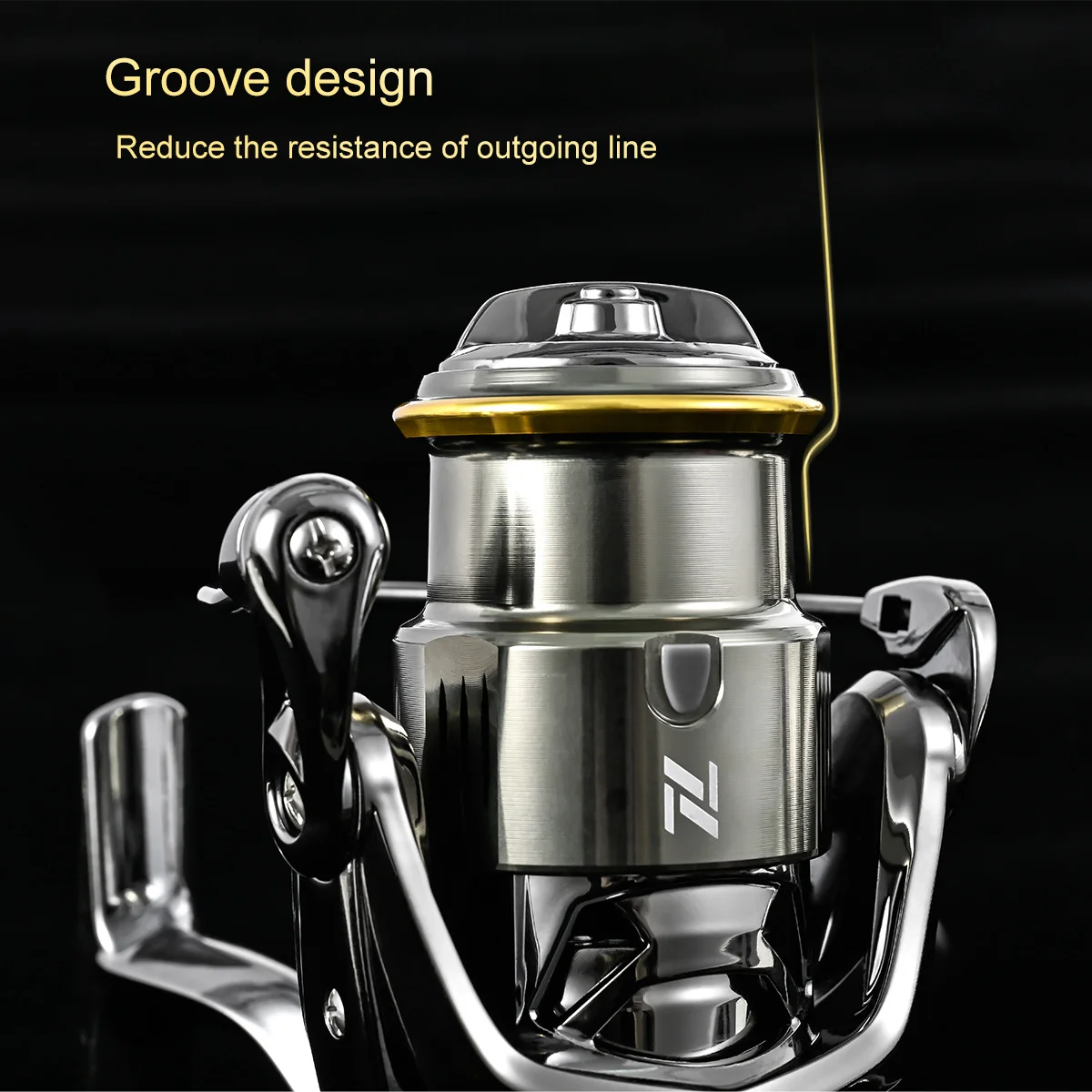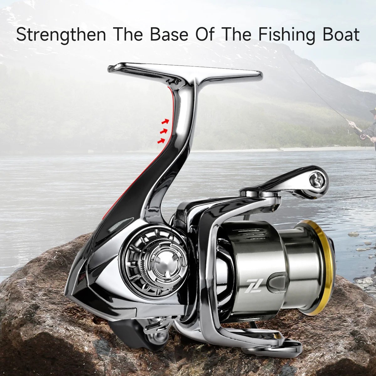 1: El cuerpo de metal hace que el carrete tenga un rendimiento perfecto mientras se pesca.