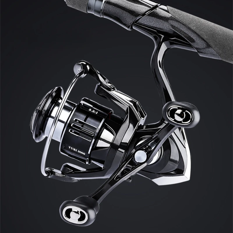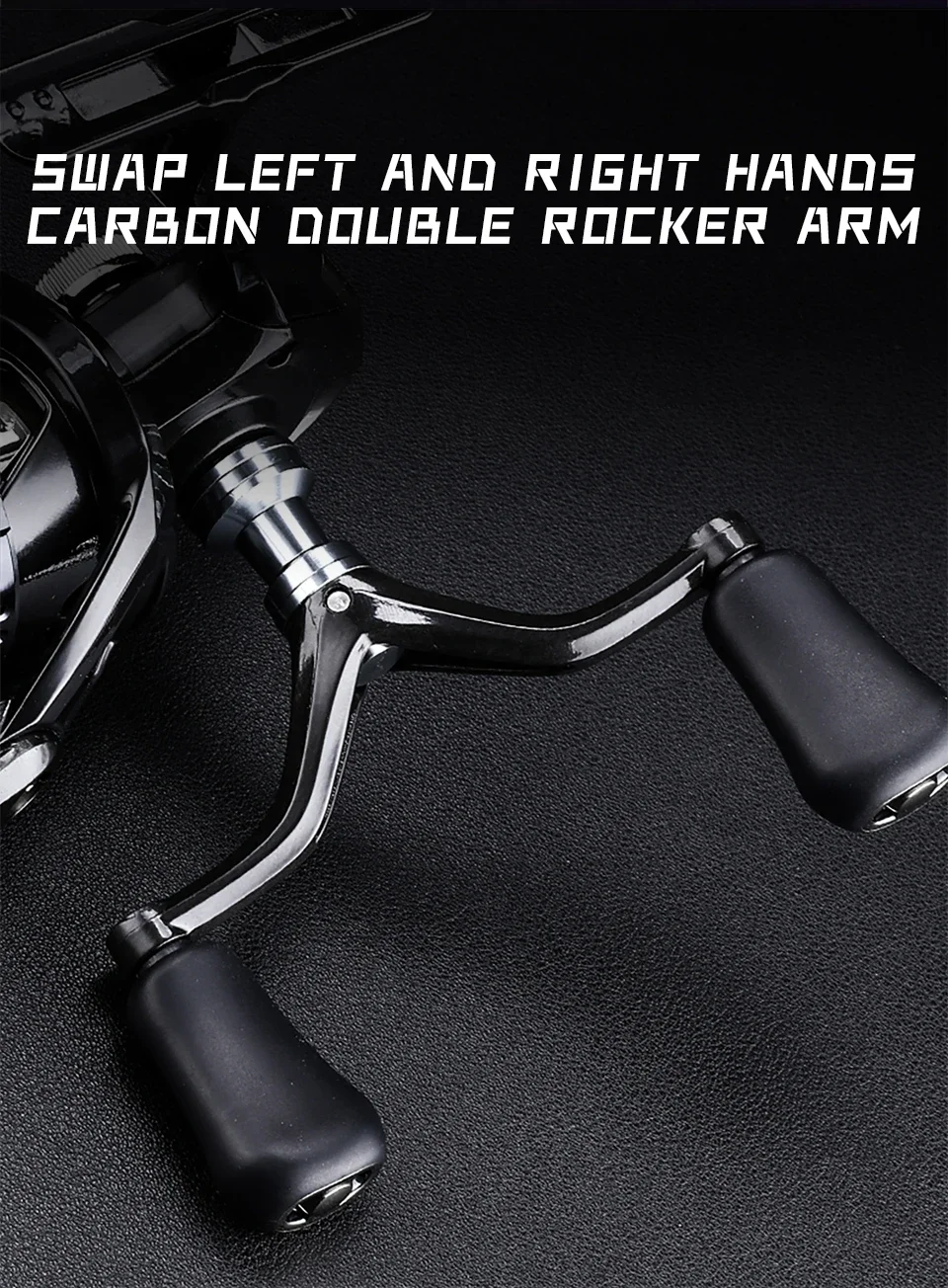 Nuevo carrete giratorio de pesca, carrete de Metal, brazo basculante doble, rodamiento de acero inoxidable, relación 5,2: 1, sistema de remolque de carrete, potencia máxima de 6KgCaracterísticas