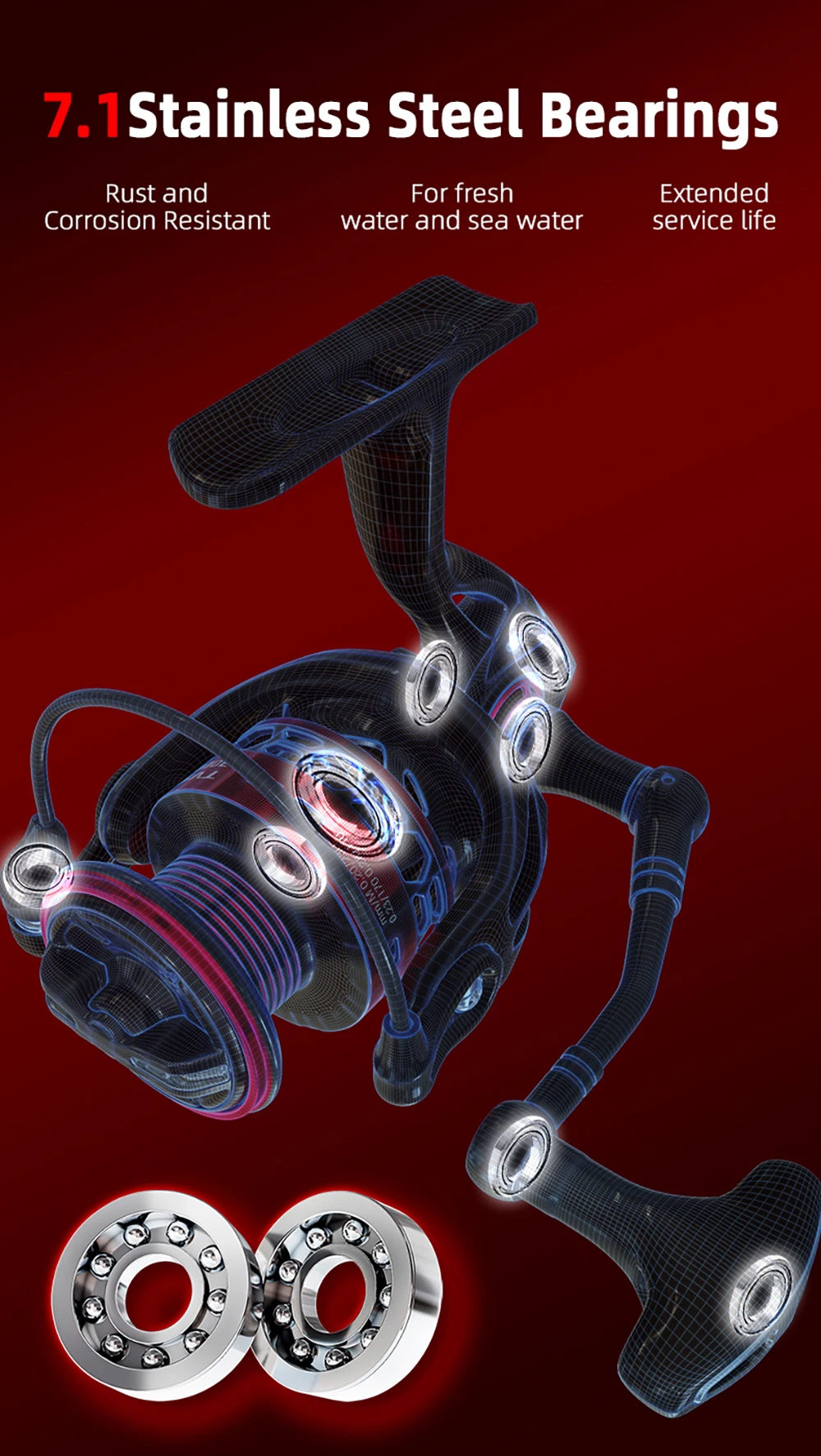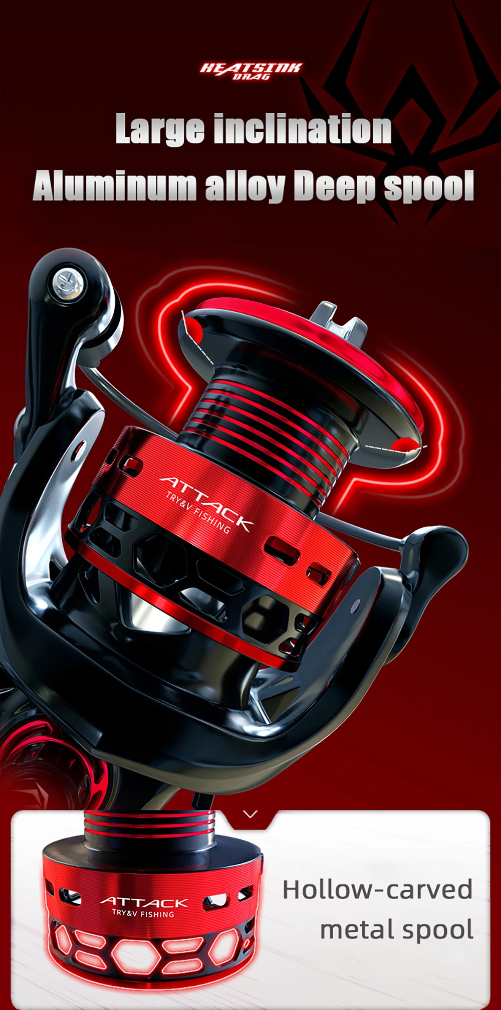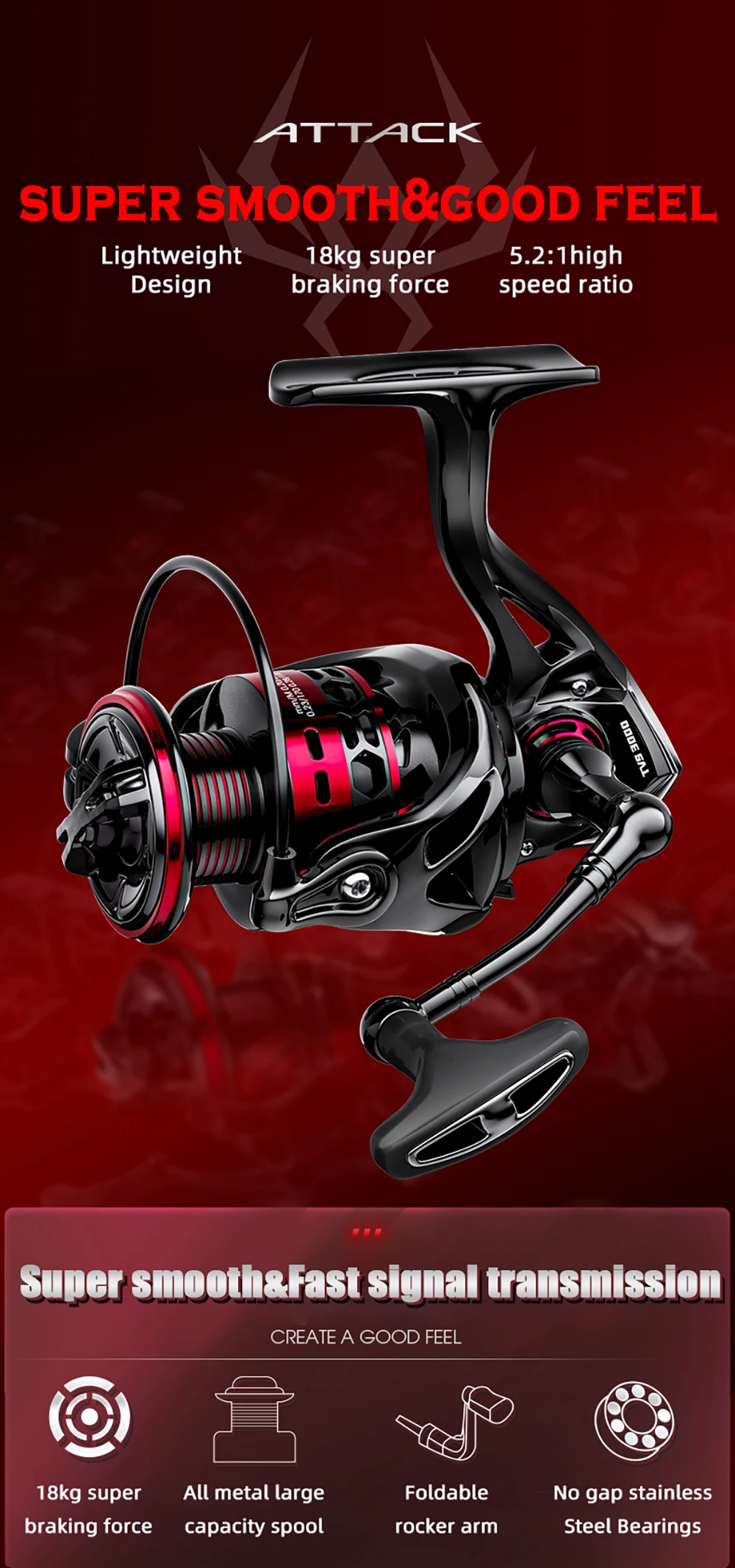 1: Todo el cuerpo de metal hace que el carrete tenga un rendimiento perfecto mientras pesca.