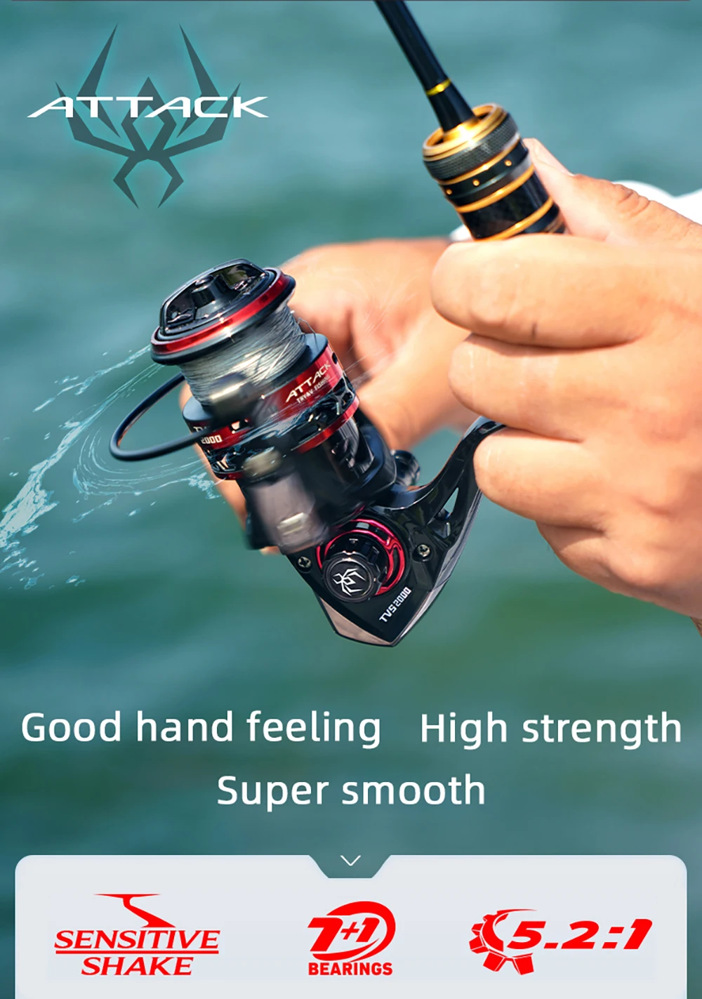 TVS6000| Peso: 414 g| MaxDrag: 18KG| Relación de engranajes: 5,2:1| Capacidad de la línea: 0,40 mm/220 M 0,45 mm/175 M 0,50 mm/140 M