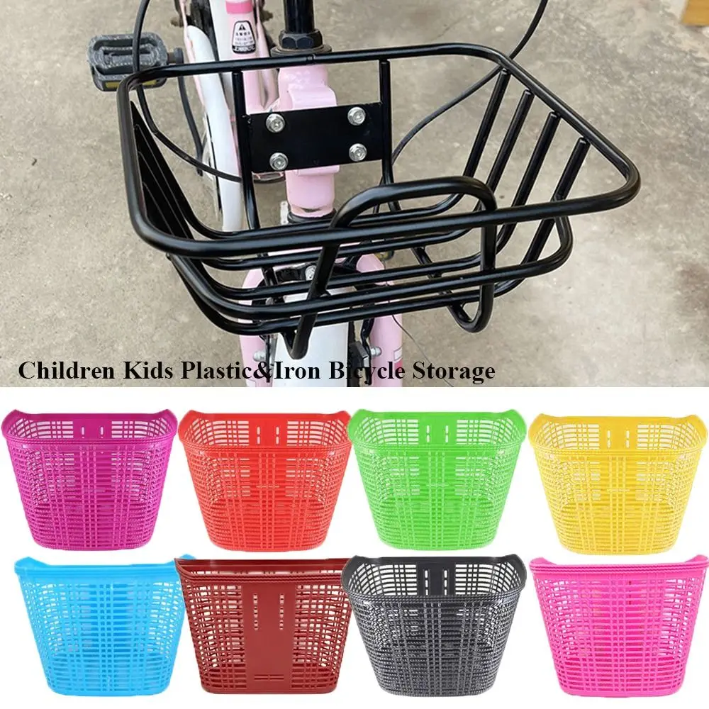 Brand new with high quality Material: Plastic&Iron Size:32*26cm(12.60*10.24in)/27*25*12.5cm(10.63*9.84*4.92in) Basket Color:Purple Red Green Yellow Blue Coffee Grey Pink Black Quantity:1pc Bicycle Basket Bike Basket Description: Fastens with straps to the cycle handlebar.