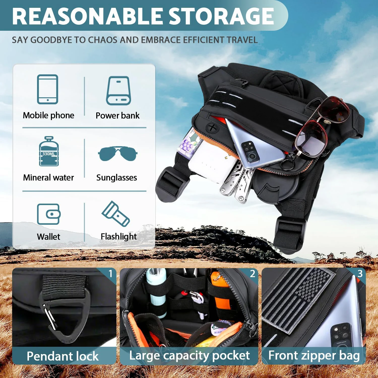 · Acceso frontal: Los compartimentos principales están ubicados en el pecho.Acceda a su teléfono, billetera, llaves o refrigerios en segundos sin quitárselo.Seguridad y comodidad de un vistazo.