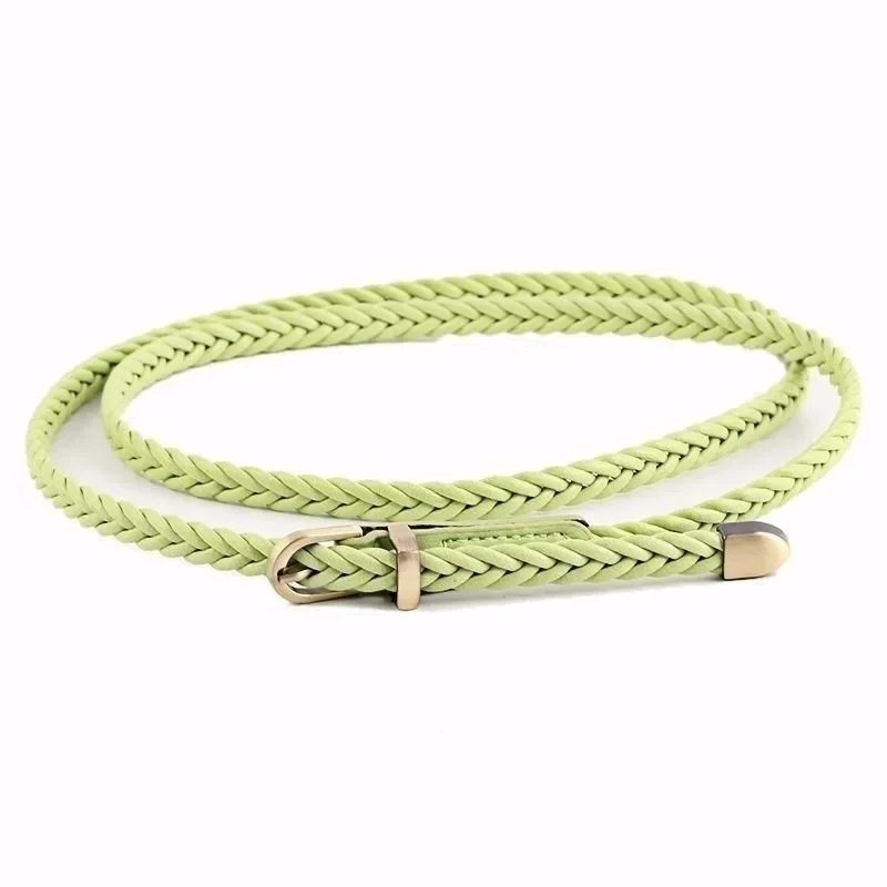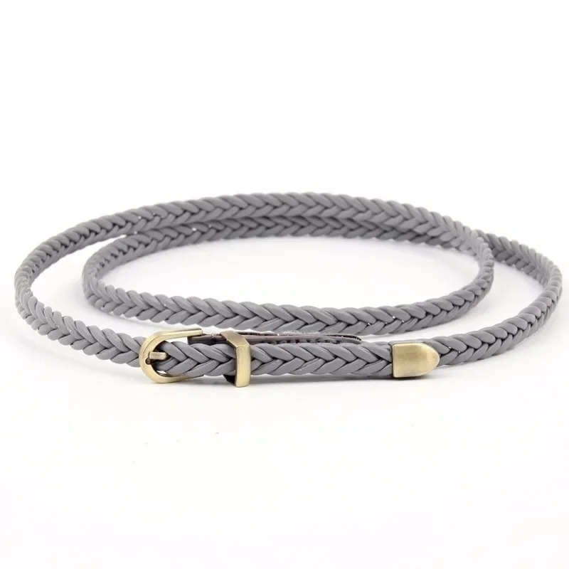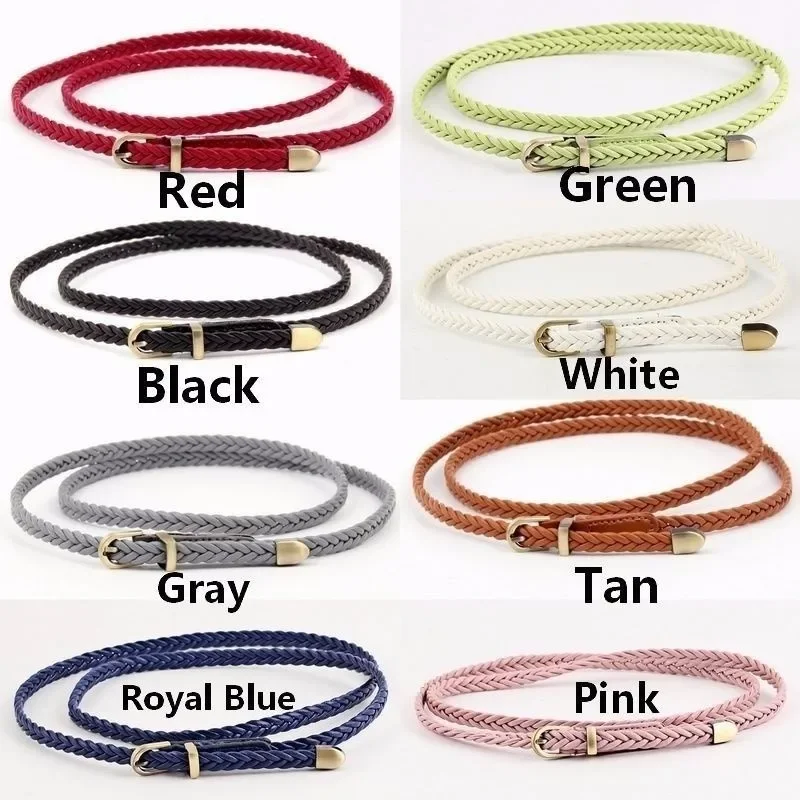 1.Cinturón trenzado hecho a mano para mujer 2.Género: mujeres 3.Estilo: Salvaje, elegante, moderno, casual. 4.Material: cuero PU + hebilla de aleación 5.Color: rojo, verde, negro, blanco, gris, tostado, azul real, rosa 6.Elementos populares: Tejer 7.Temporada aplicable: salvaje para toda la temporada. 8.Adecuado: vestidos, faldas largas, faldas, suéteres, abrigos. 9.Tamaño: (aprox.) 99 cm * 0,8 cm