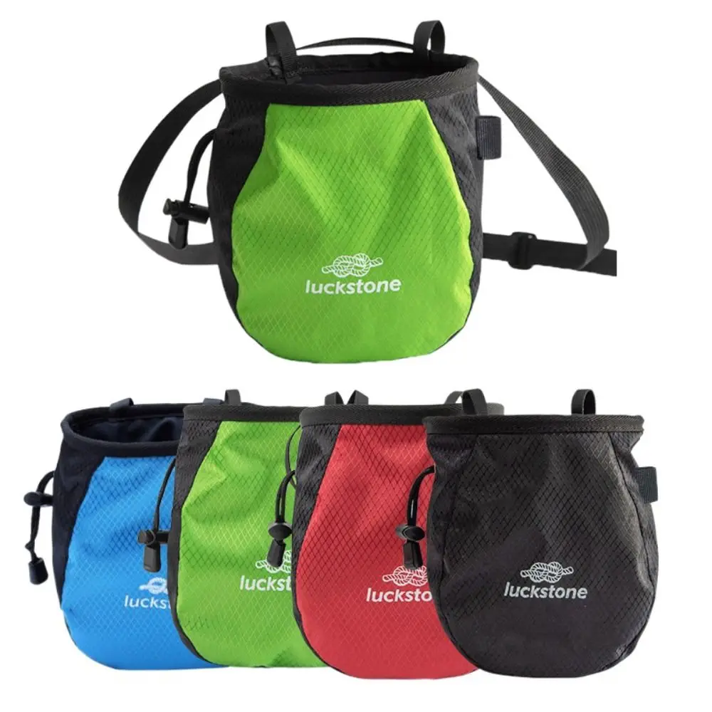 1. Adjustable Quick-Release Belt: Climbing chalk bag comes equipped with an adjustable strap featuring a quick-release buckle, ensuring a secure and comfortable fit around the waist for climbers of all sizes.