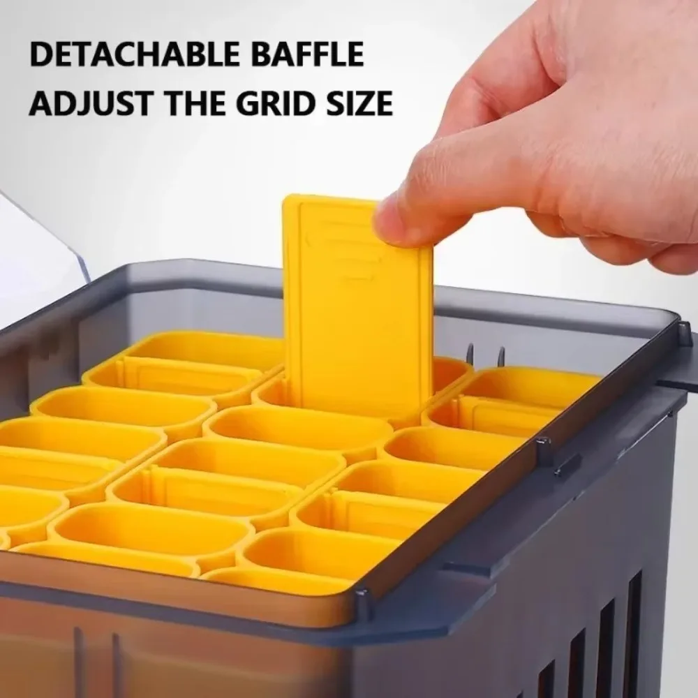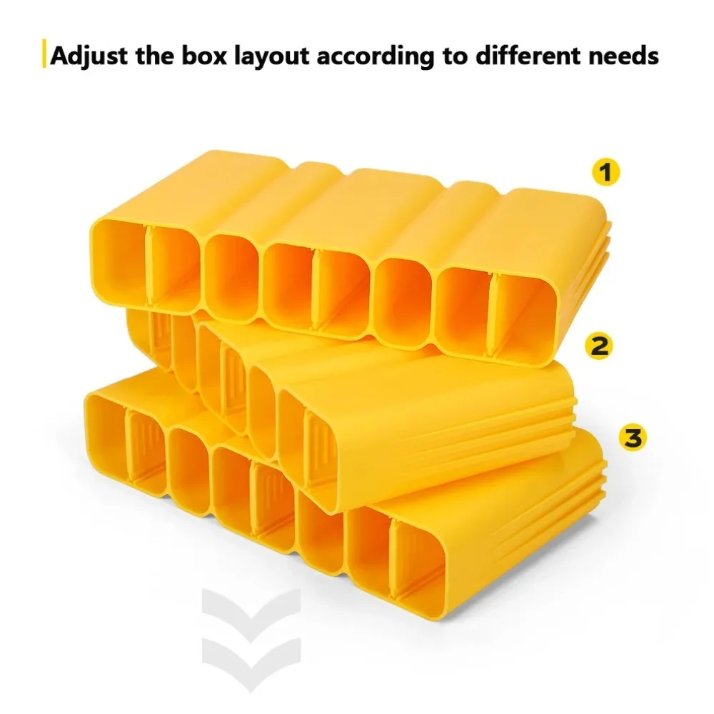 PP+ABS sorting boxes are outstanding in terms of material toughness and aesthetic appearance, as well as being resistant to compression and wear, providing good protection. They are lightweight, durable, and not easily damaged. The ABS material has a smooth surface and is easy to clean, which can keep the storage box clean and hygienic. It has detachable compartments and the bottom is not damp when drained.