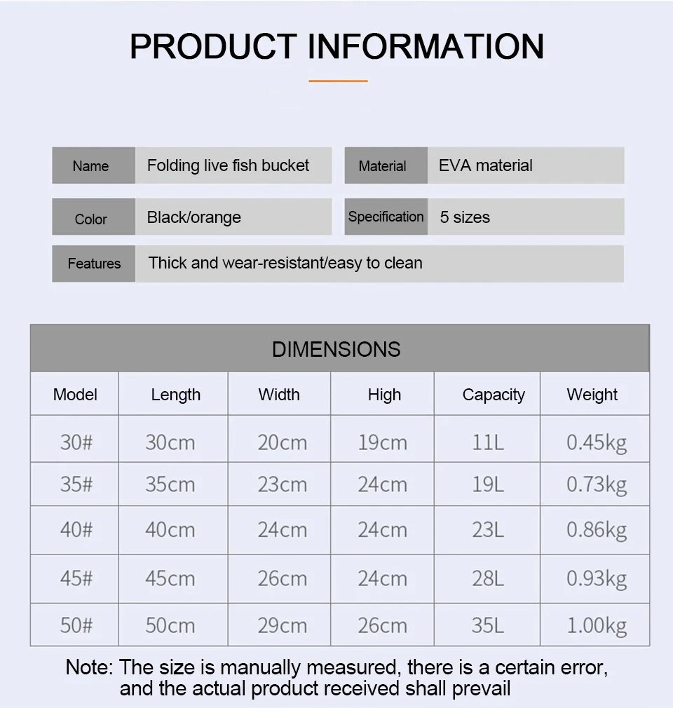 1 Cubo de pesca plegable EVA (El Cubo de pesca no incluye bomba de oxígeno)