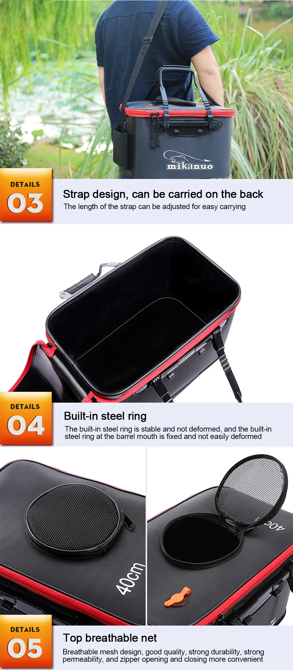-- 5. La correa ajustable es adecuada para diferentes personas, más estable que el cubo de pesca plegable redondo.