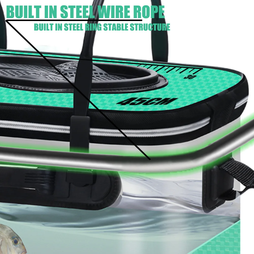 08: Diseño de malla con cremallera superior: no solo puede colocar fácilmente el pez en el cubo, sino que también puede evitar que los peces salten del cubo.