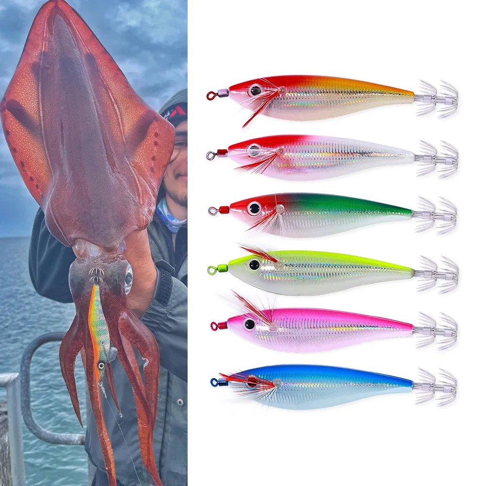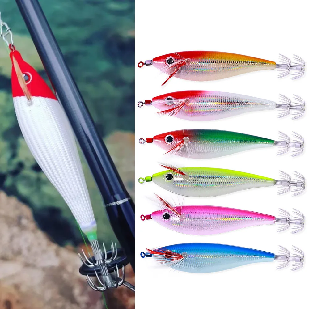 Nuevo Eging Calamar Jigging Ganchos de madera para camarones Cebo luminoso para pulpo 10 cm 10g Señas Jigs Señuelos Pesca en agua salada Cebo artificial