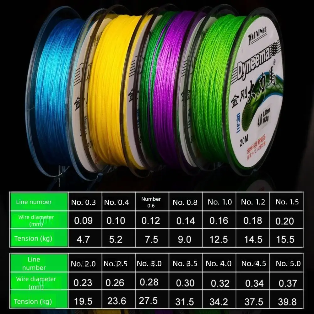2: Línea de PE de 4 hebras, construcción trenzada única, hecha de fibras de PE de ultra alta resistencia.