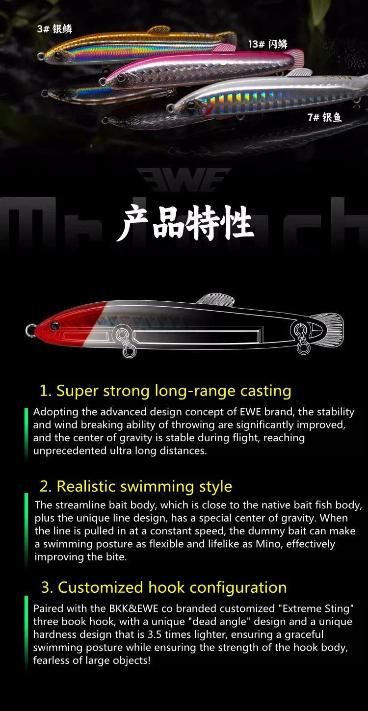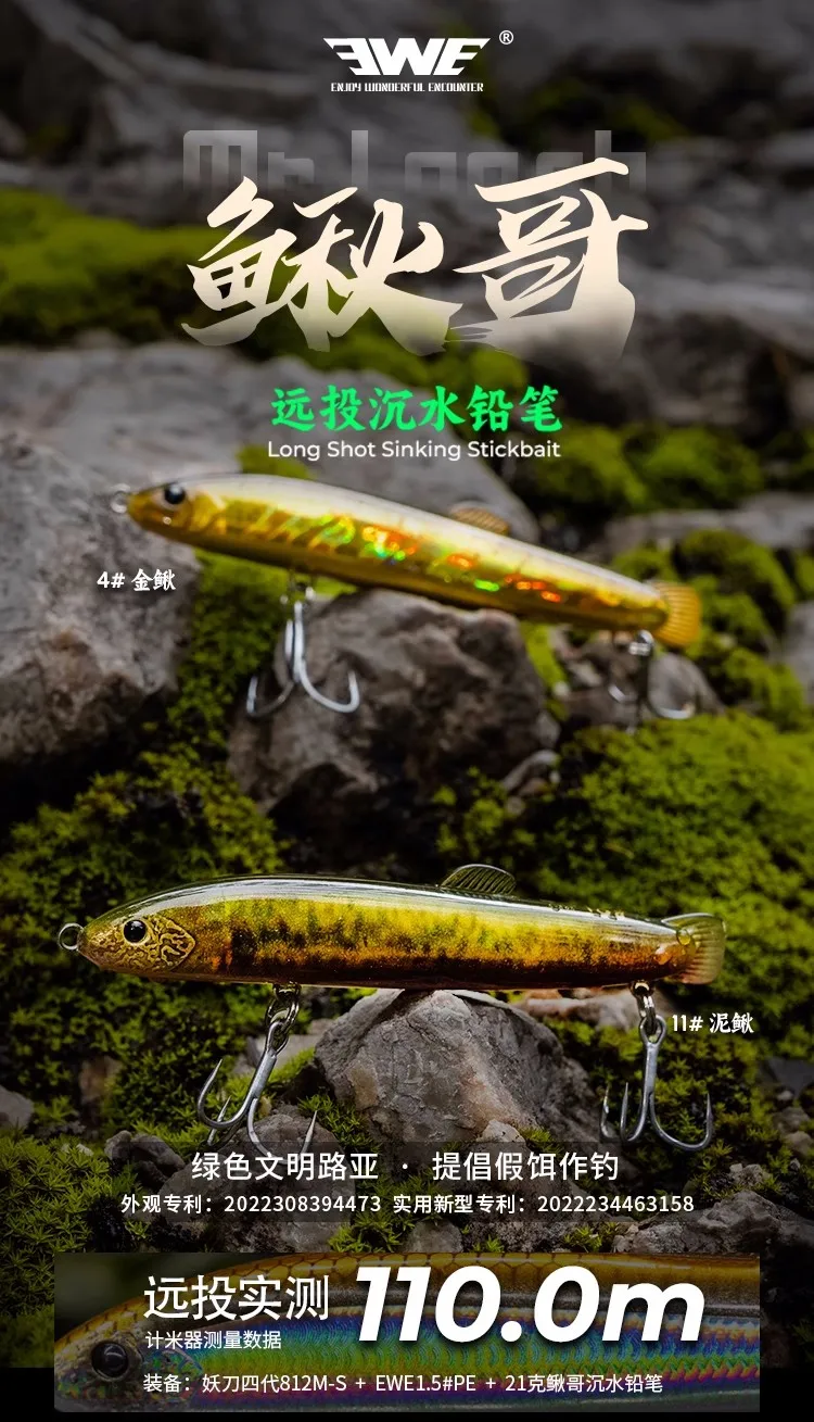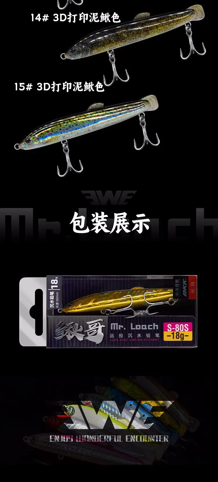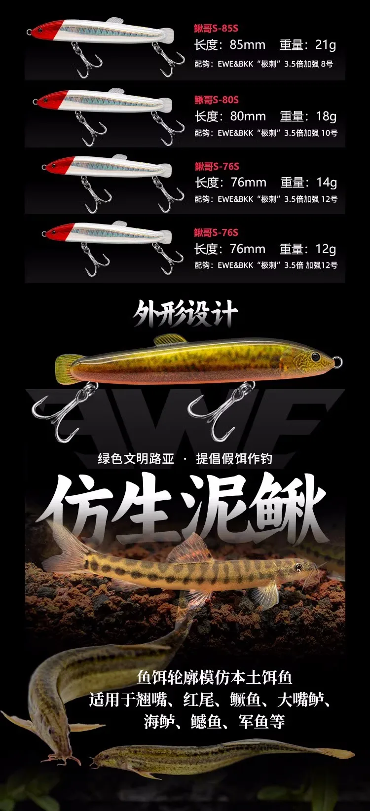 Nuevo EWE Qiuge 76S/80S/85S tiro largo hundimiento señuelo de pesca con lápiz 12g/14g/18g/21g Wobbler Artificial biomimético Loach cebo falso