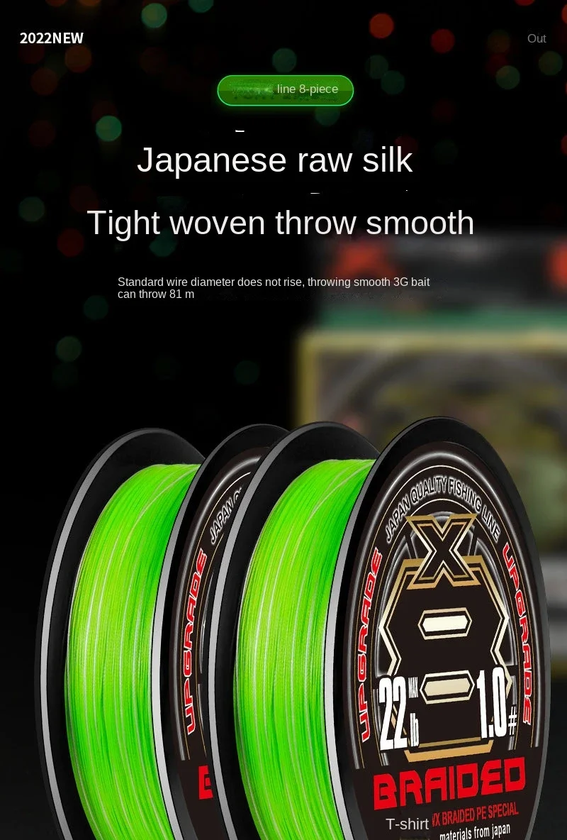 Nuevo Japón PE X8 actualización trenzada 100-500M verde blanco línea de pesca 14-80LB línea de PE de alta resistencia para carrete de pesca de lubina de carpa