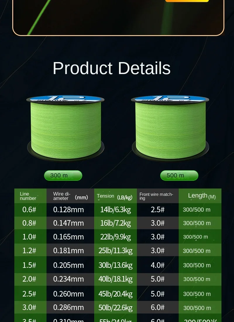 Este enlace de cable pe nuevo revestimiento verde claro, la fuerza de tracción de 12 piezas es muy fuerte, el diámetro del cable es ligeramente grueso ( Los clientes que buscan tensión y tienen bajos requisitos de diámetro de alambre pueden elegir esta línea.) sin absorción de agua, sin aumento.