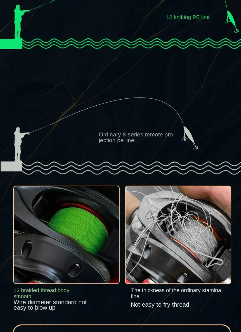 Antes de ir online, el hilo se empapa con agua mojada y luego arrastre la rueda de pesca del hilo con un paño húmedo.Limpie el exceso de resina de la superficie.¡La línea húmeda es más suave y tersa después del lanzamiento!