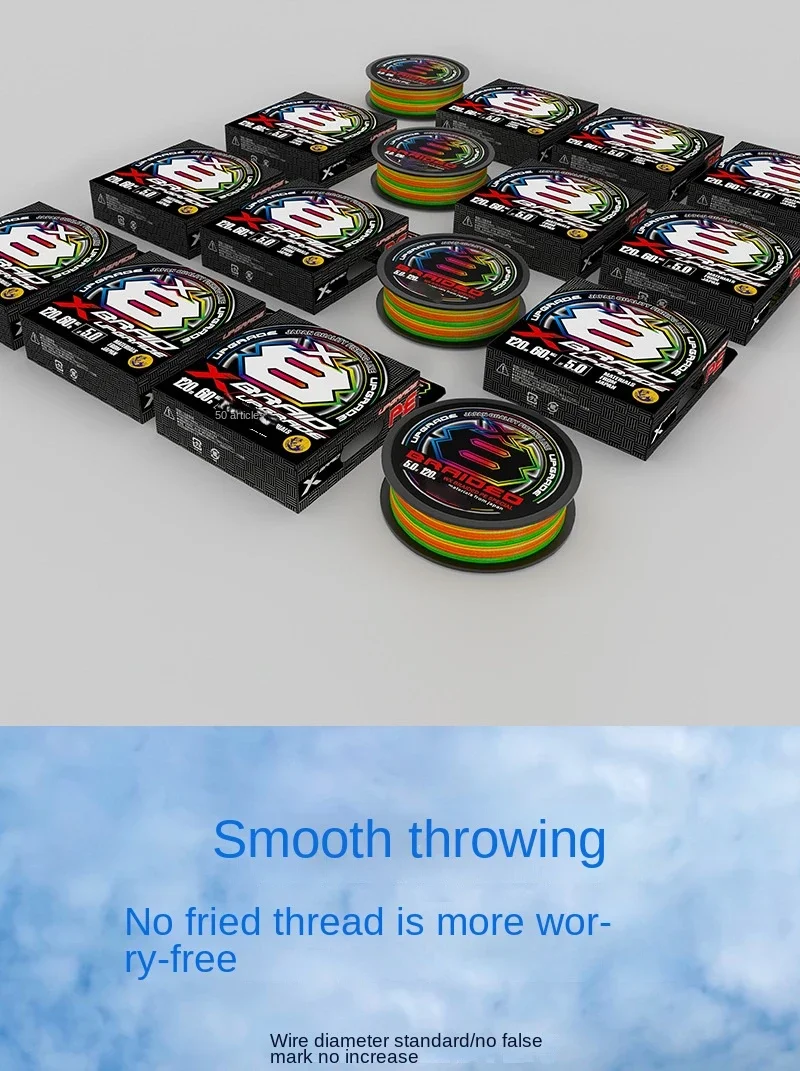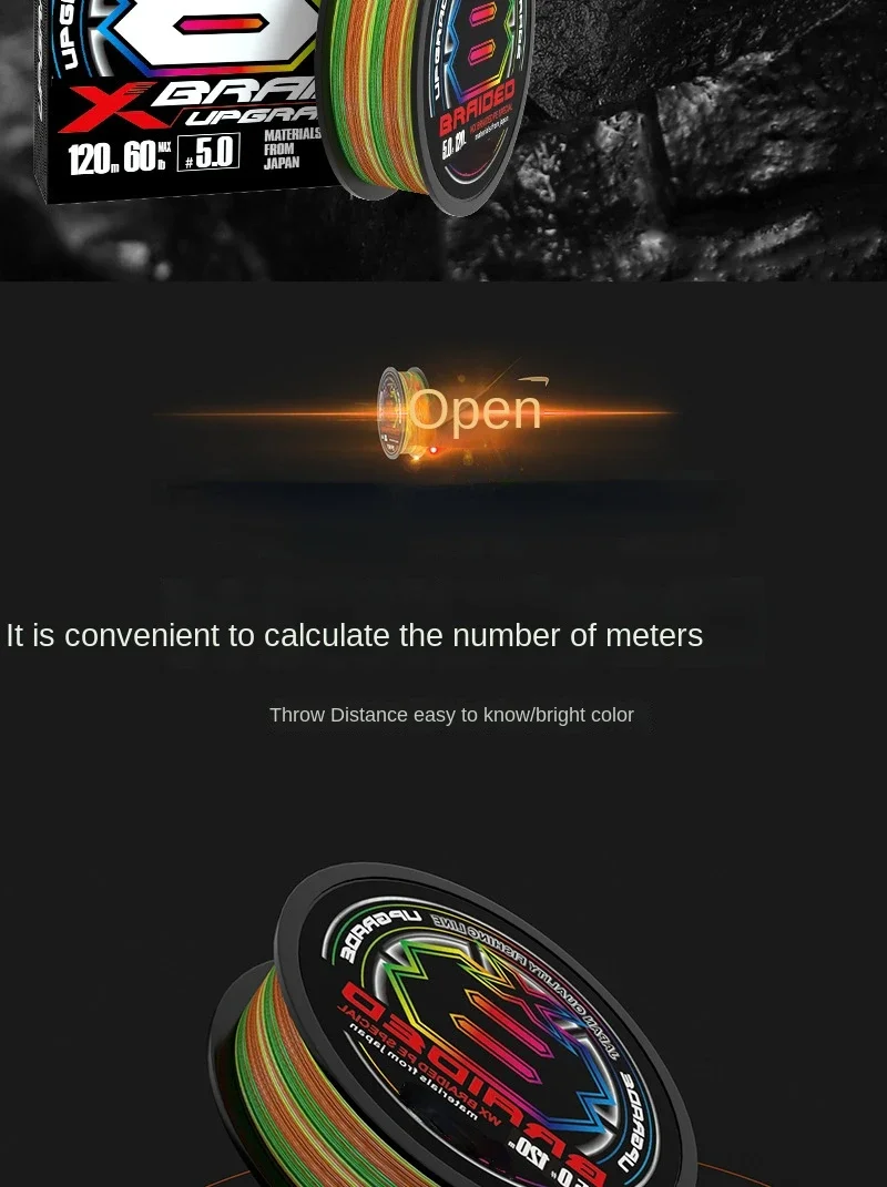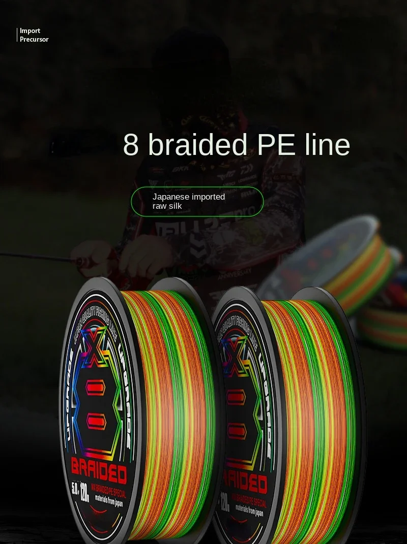 Nuevo Japón X8 actualización PE 14LB-80LB línea de pesca trenzada tipo hundimiento línea de PE multicolor de alta resistencia para carrete de pesca de carpa lubina