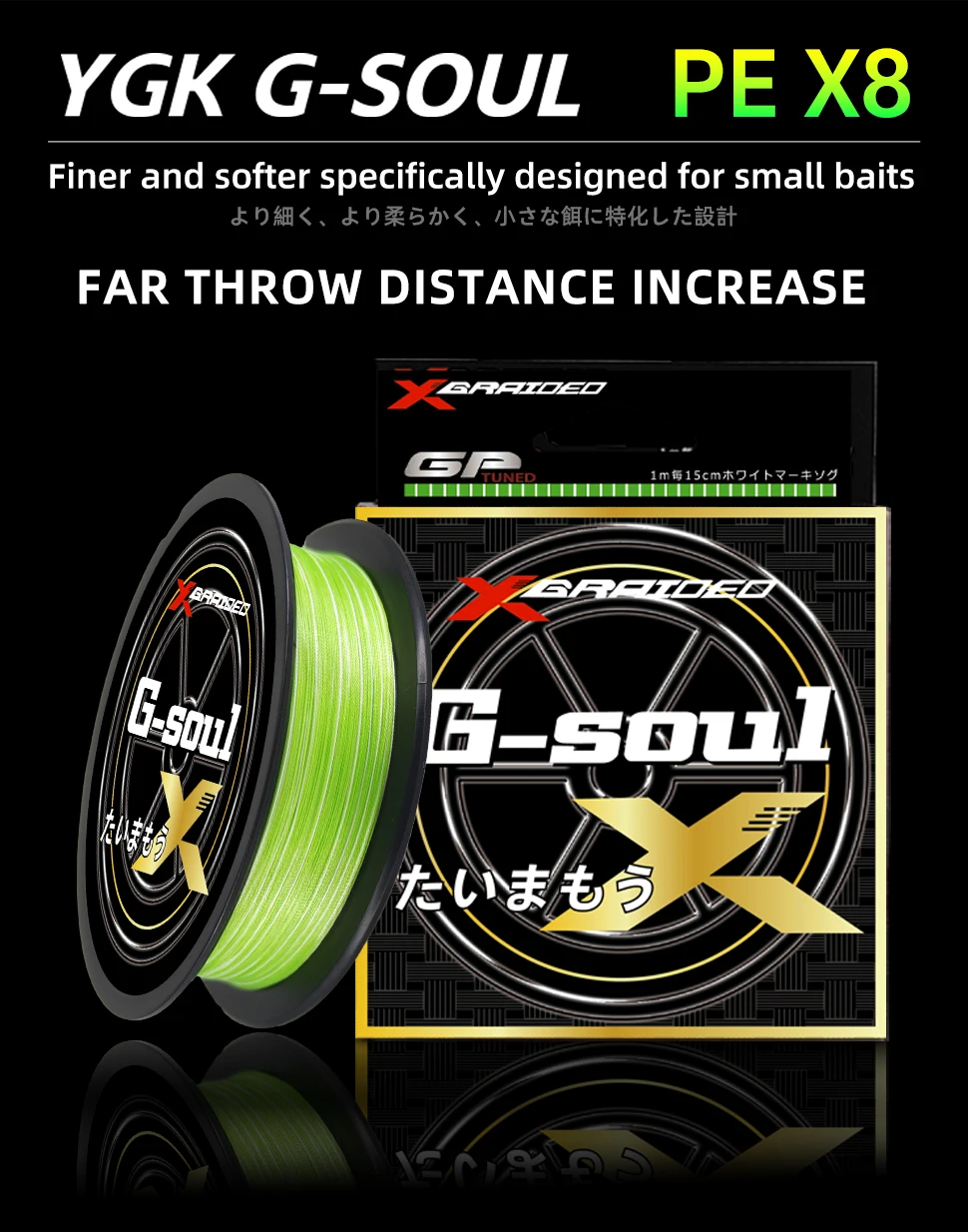 Nuevo Japón YGKX G-SOUL X8 hilo de pescar trenzado mejorado súper fuerte 8 hebras multifilamento línea PE 100M/150M/200M
