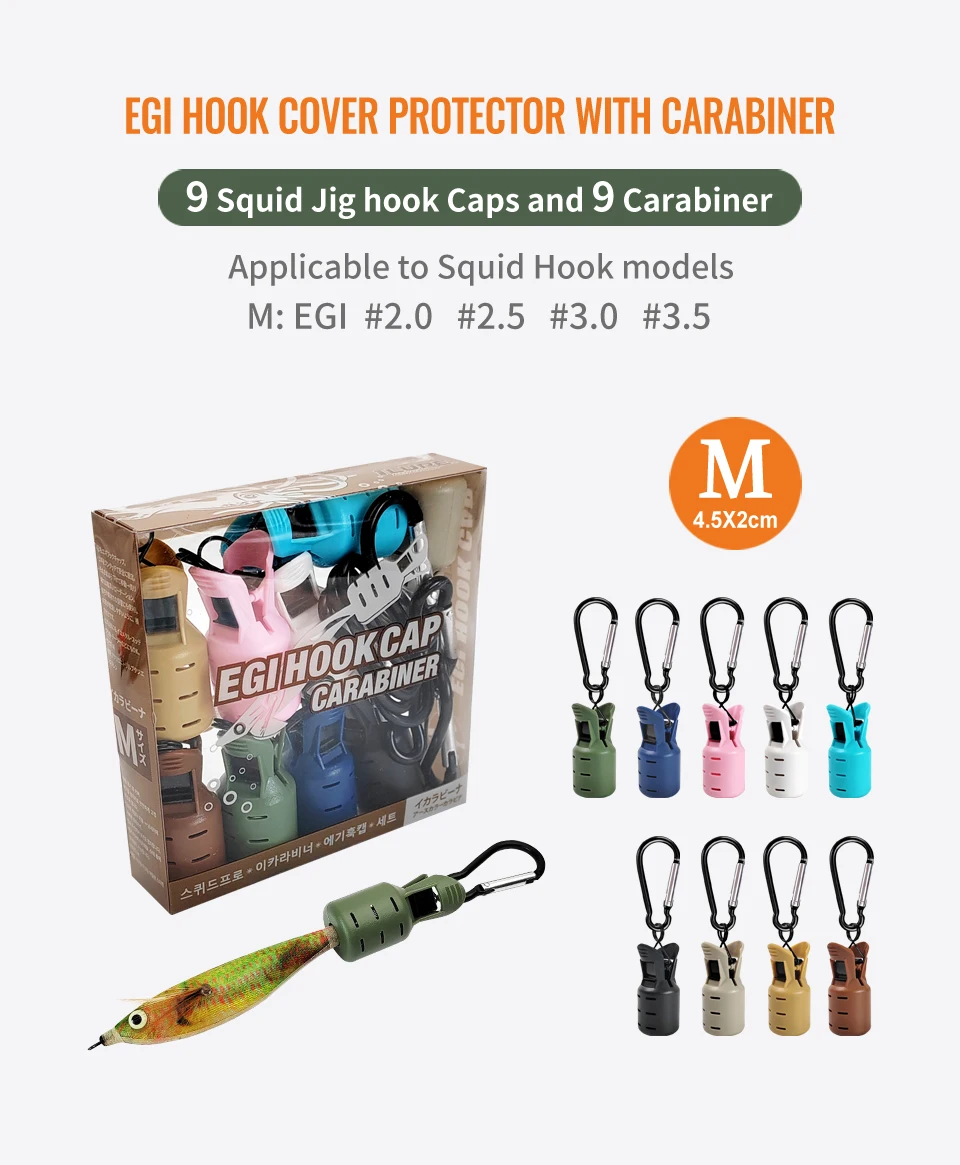 Nuevo Kit Protector de cebo de plantilla de calamar, 9 Uds., cubierta de anzuelos de calamar Egi de pulpo, paraguas de sepia, tapa de señuelo con mosquetón, aparejos de pesca