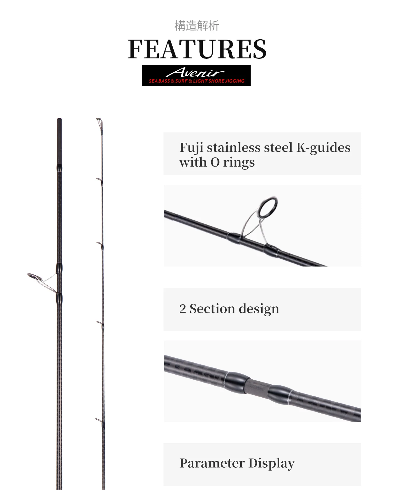 Nuevo MADMOUSE AVENIR Light Shore Jigging Rod 3,05 m M/MH para pesca de Surf de lubina con piezas Fuji señuelo peso 7-50g PE 0,8-3