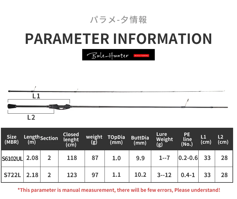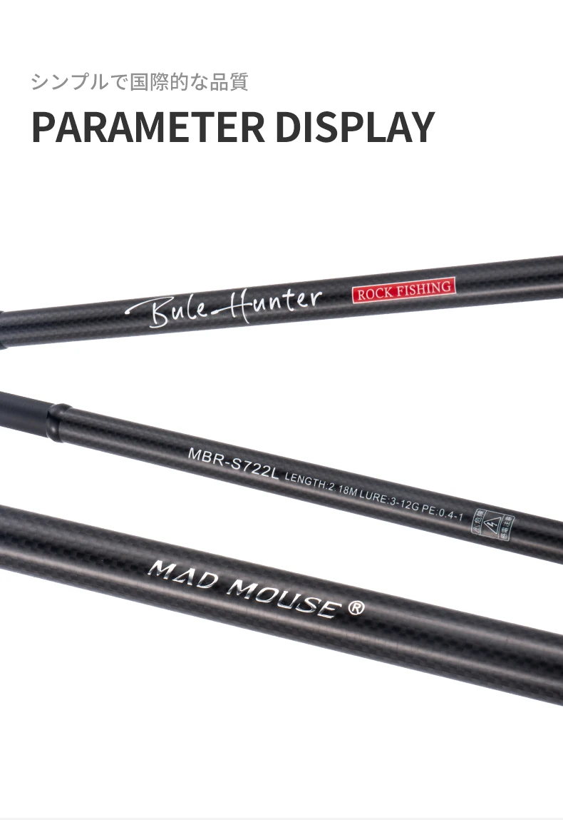 Nuevo MADMOUSE Fuji Guide Blue HUNTER juego de luz caña de pescar 6102UL /722UL punta sólida giratoria caña de pescar de agua salada para peces de roca