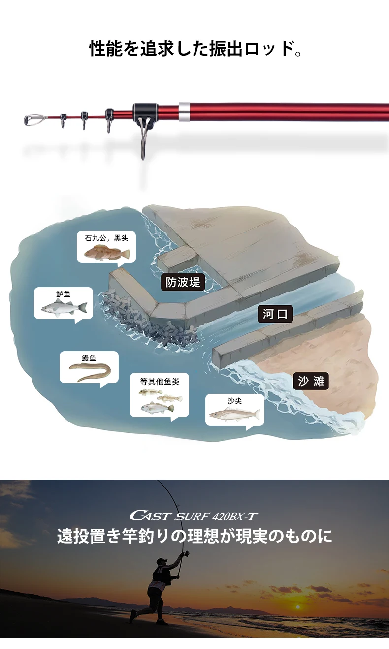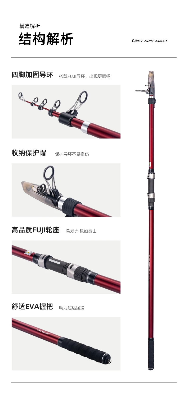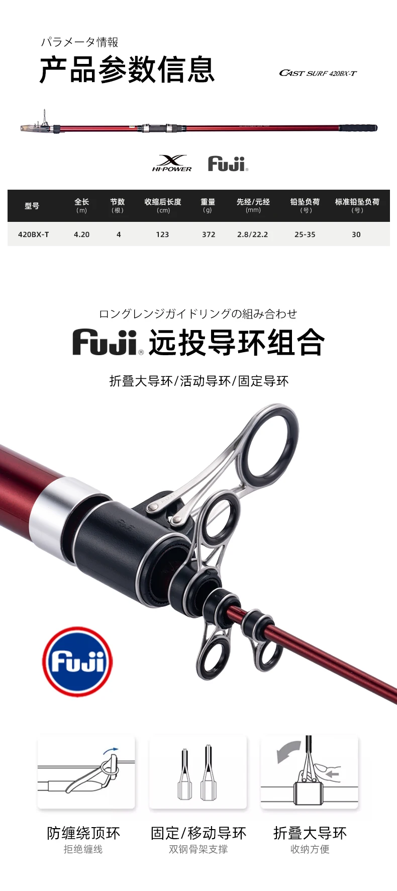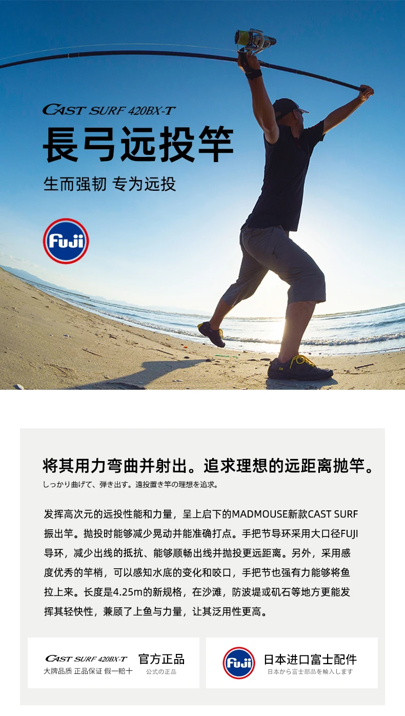 Nuevo MADMOUSE Fuji piezas CAST SURF 420 BX-T caña de pescar telescópica Surfcasting caña de Surf 4,2 M 4 secciones 100-250g