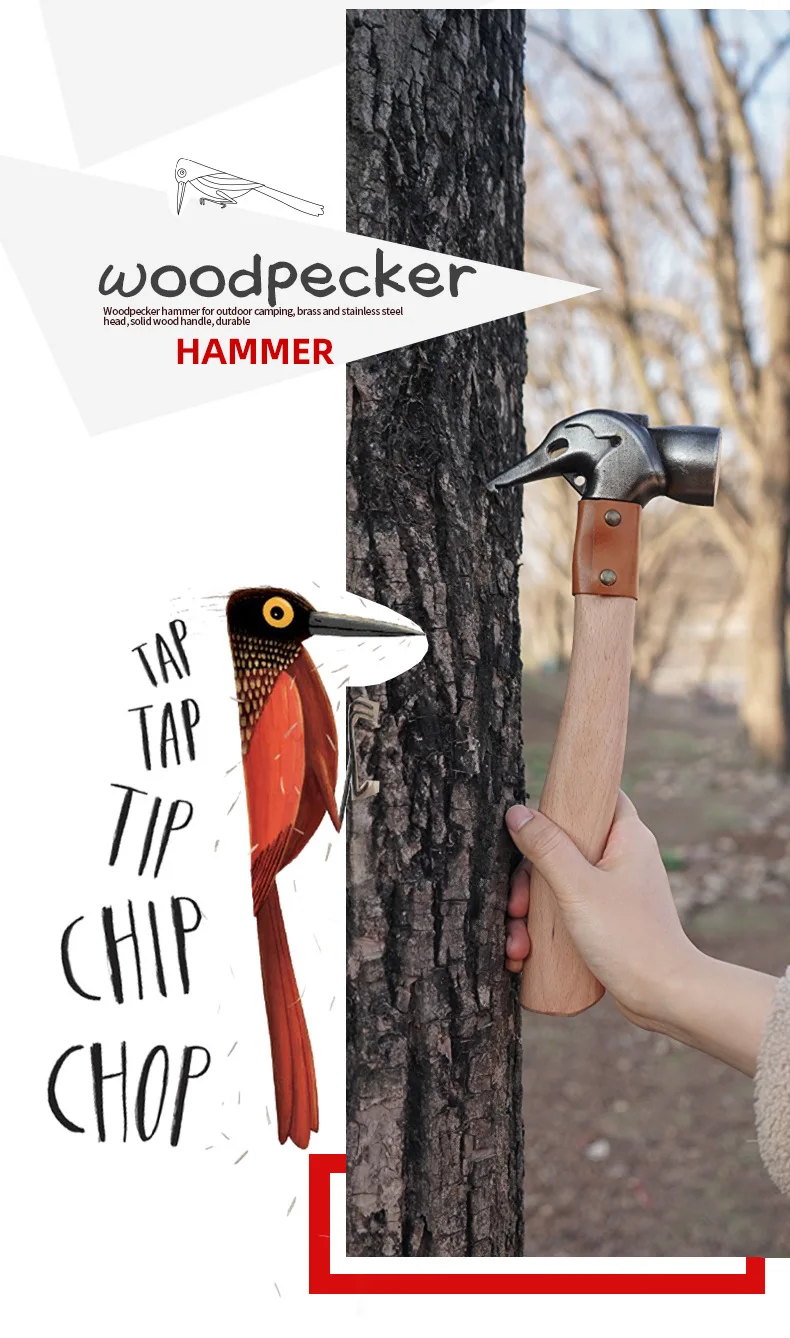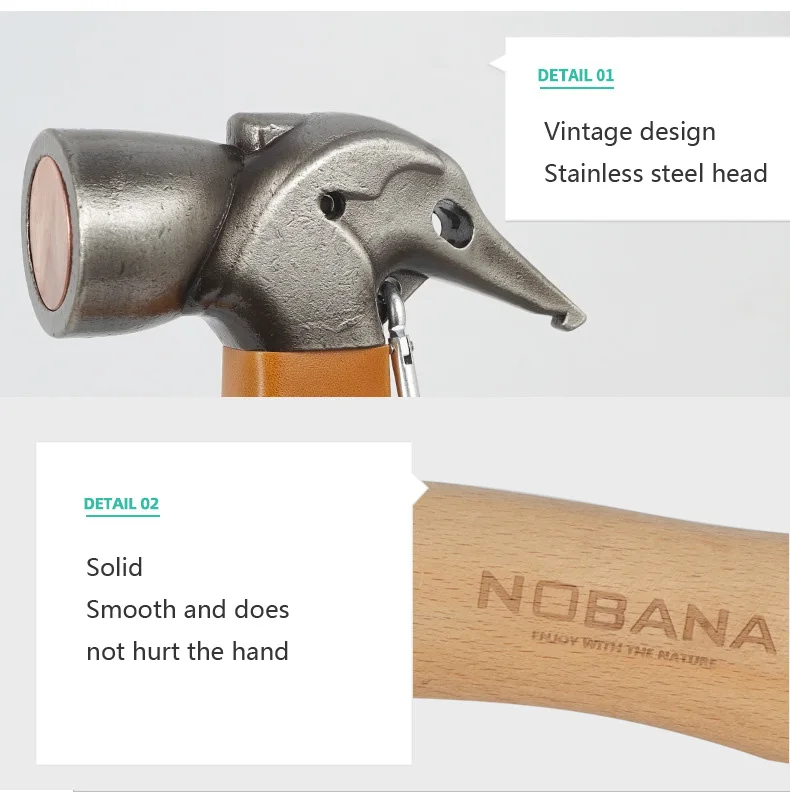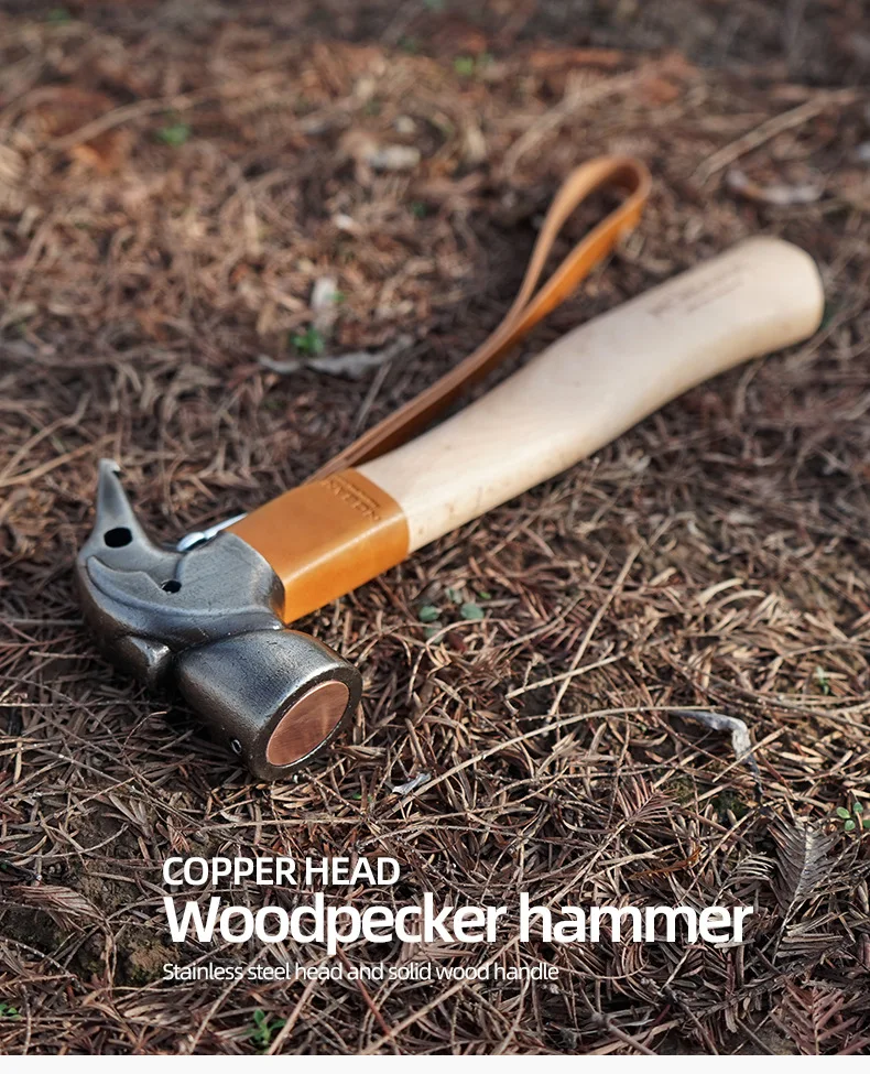 Nuevo Martillo de acero inoxidable para acampar al aire libre, martillo de pájaro carpintero de latón, tienda multifuncional, toldo, martillo para clavos, martillo para acampar
