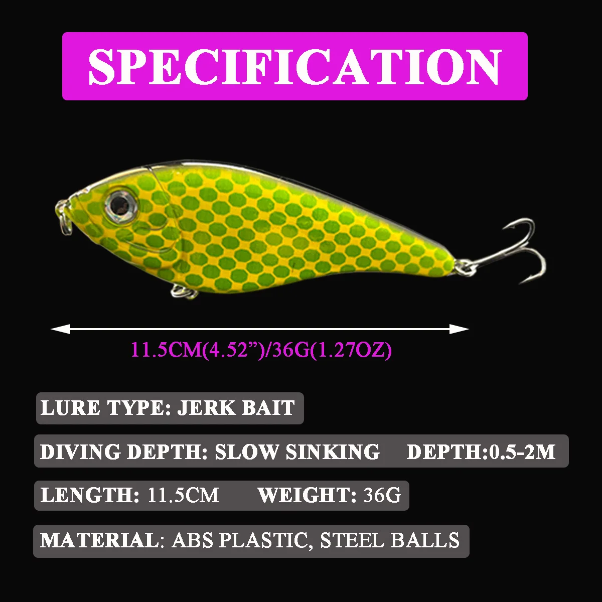 Nuevo OEM JERKBAIT SWIM GLIDE BAIT DURO 11.5cm 36g señuelo de pesca hundido cebo Artificial duro de fundición larga para Lucio