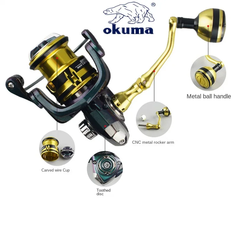 (3) del producto del carrete de pesca Configuración: Copa de alambre de corte de aluminio, brazo oscilante plegable de metal, intercambiable izquierda y derecha, sin reacción