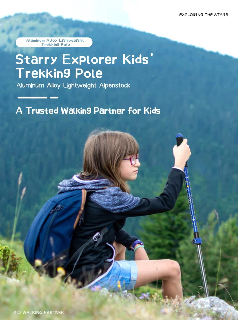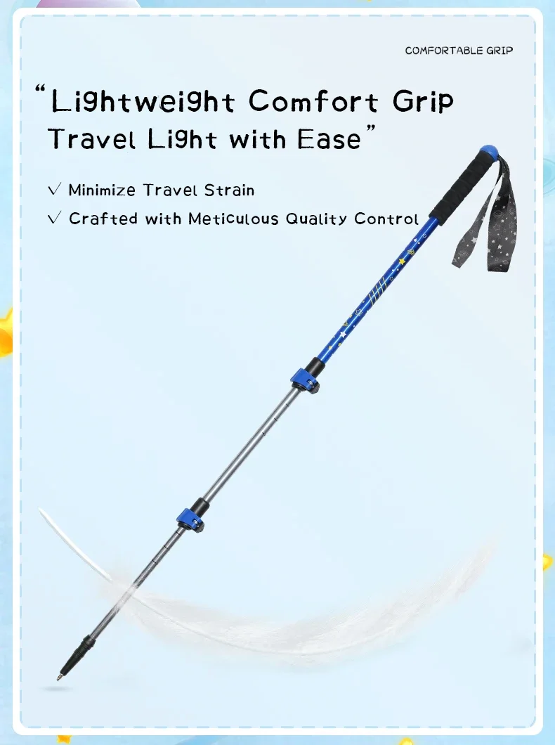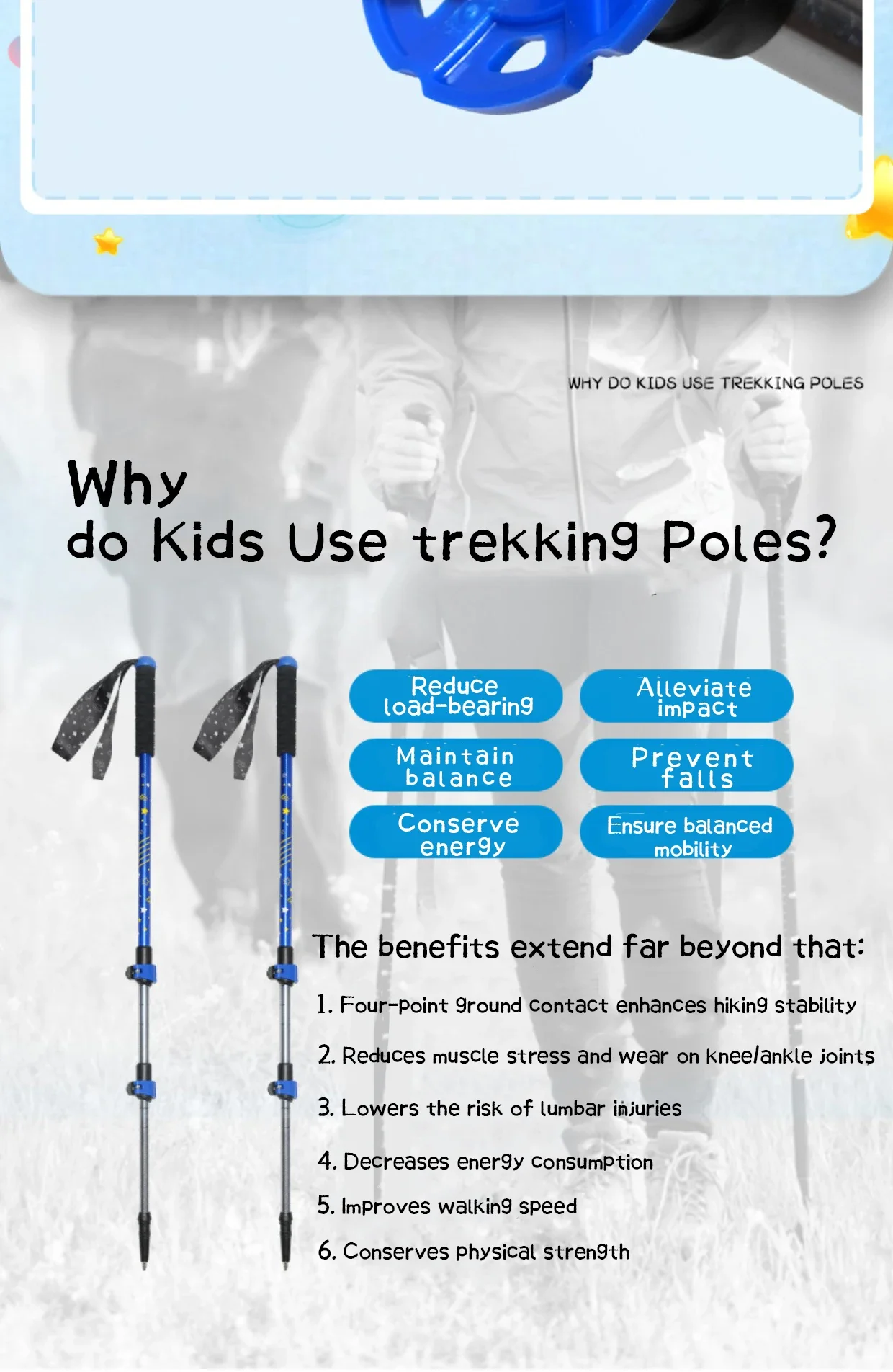 Nuevo poste de senderismo para niños con cerradura exterior ultraligera aleación de aluminio tres secciones telescópicas ajustables bastones para caminar al aire libre