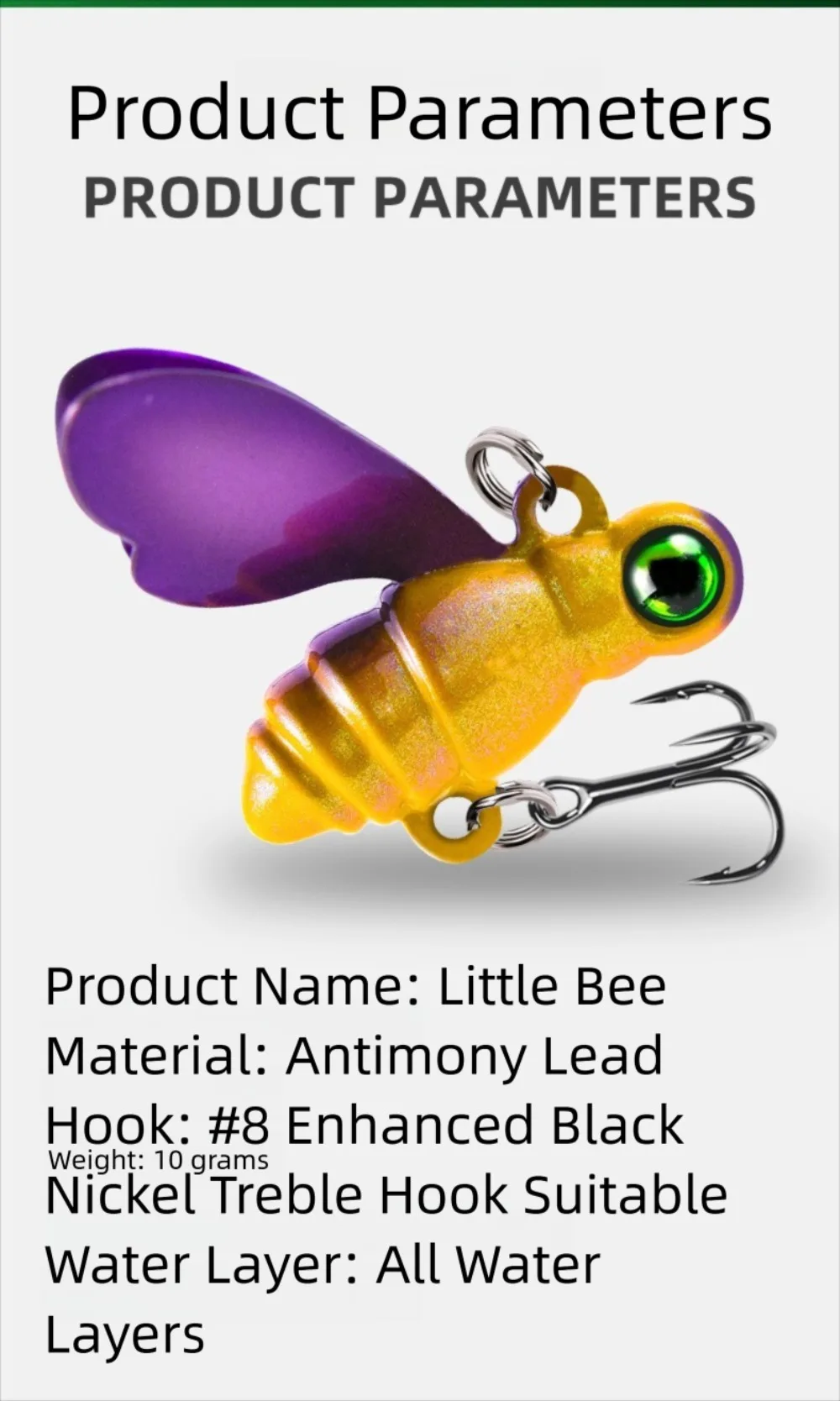 Description: 1. Highly reminiscent of the honeybee, it is favored by fish that like to attack insects 2. The lead body immediately sinks quickly and accurately to reach the target water layer 3. The carefully carved metal wings swim lifelike and agile, stimulating the fish's desire to hunt Specification: 1.Product name:Bionics Bee Lure 2.Usage:Fishing Package included: 1Pcs x Bionics Bee Lure Note: -Due to the difference between different monitors, the picture may not reflect the actual color of the product. -Please allow 1-2mm error due to manual measurement. -Due to long shipping, the item may damage in transit, if the item damage, pls contact us firstly immediately before leave feedback, ZUOFILY fishing Store thanks for your understanding.