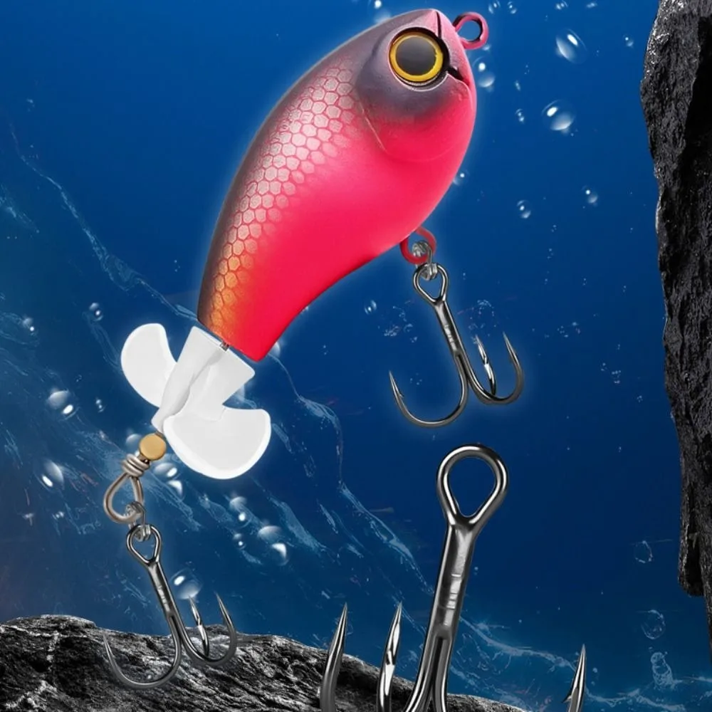 2. Señuelo de pesca, cebo de lápiz flotante, señuelo de cola de doble hélice giratorio.