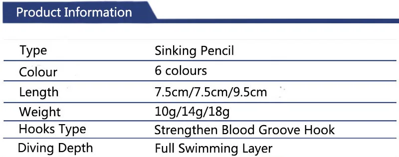 Descripción :Nuevo señuelo de lápiz 10g14g18g 75mm 95mm Minnow Señuelos de pesca cebo duro luz vibratoria de alta calidad Jigging aparejos de pesca japoneses