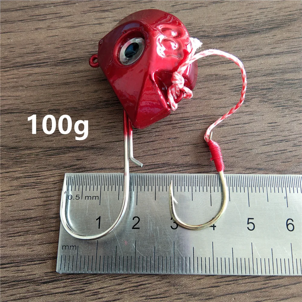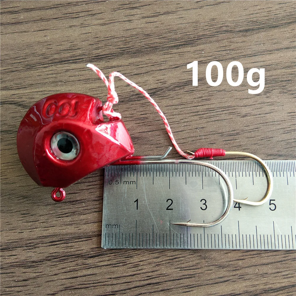 Nuevo Señuelos JIG grandes, anzuelos de Pesca con cabeza de Metal de 80g y 100g con un solo anzuelo, accesorios de Pesca, equipo de Pesca en el mar para barco