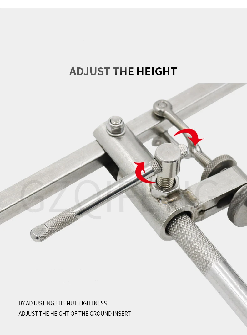2.Ángulo ajustable, la cabeza del bastidor se puede ajustar ajustando la altura del tornillo para ajustar el ángulo.
