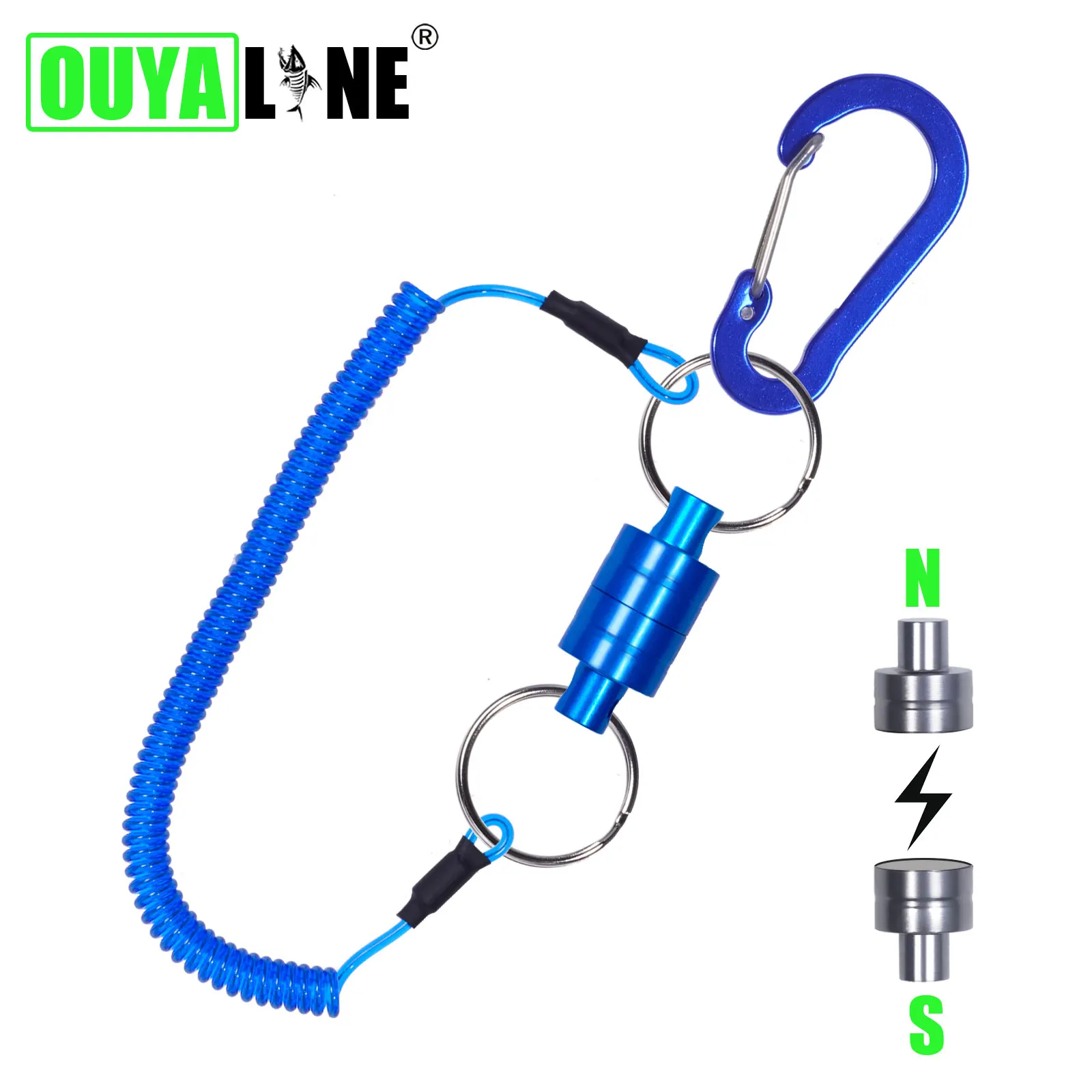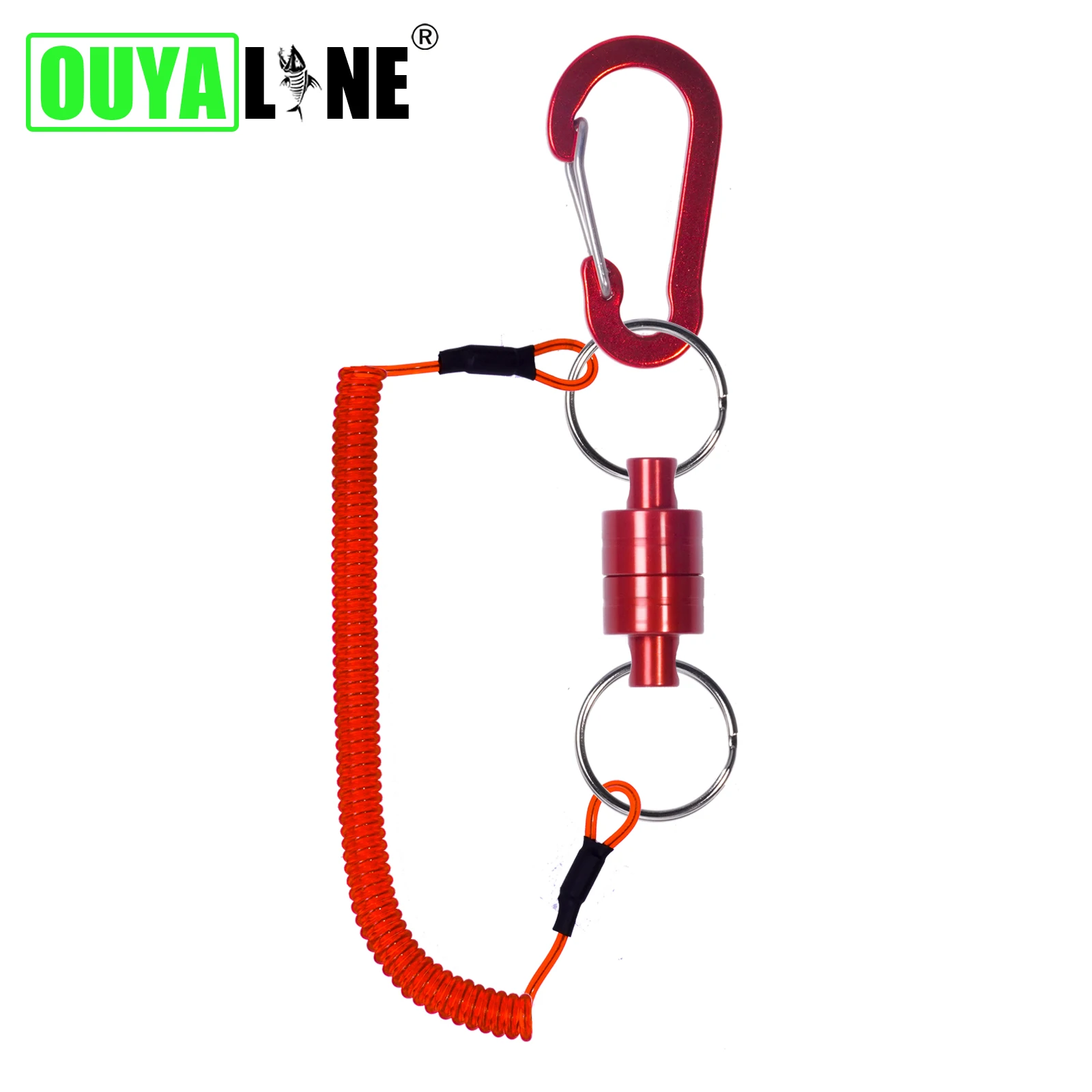 Nuevo soporte magnético de liberación de red con herramienta de pesca con cordón enrollado imán fuerte hebilla de mosquetón accesorios de aparejos de cuerda anticaída