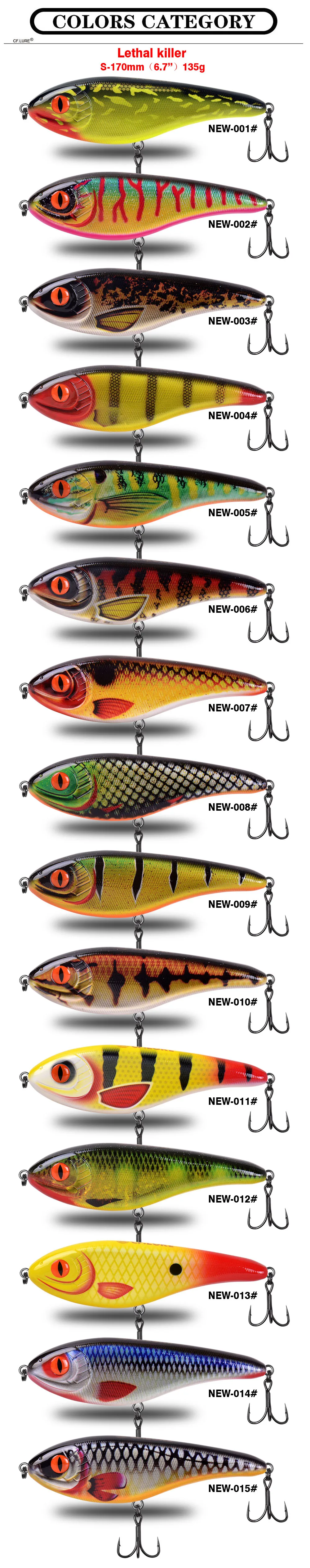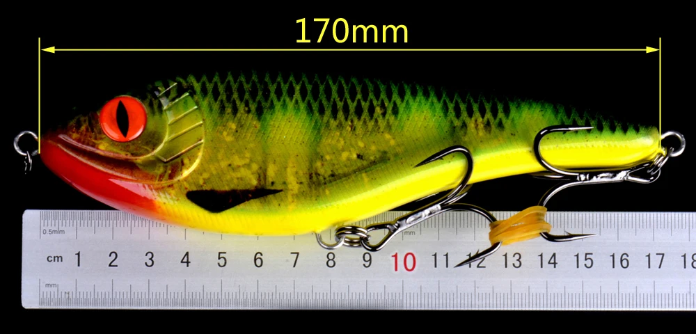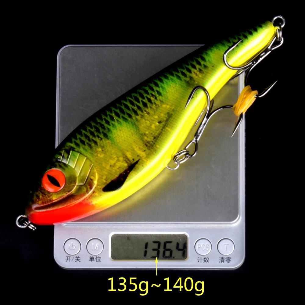 Nuevo Tamaño grande 170mm 135g Jerk cebo de hundimiento lento Artificial duro JerkBait señuelo de pesca con dos anzuelos reforzados