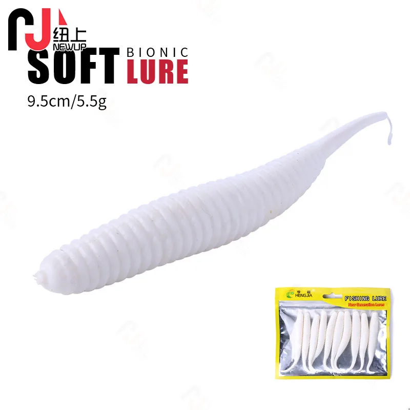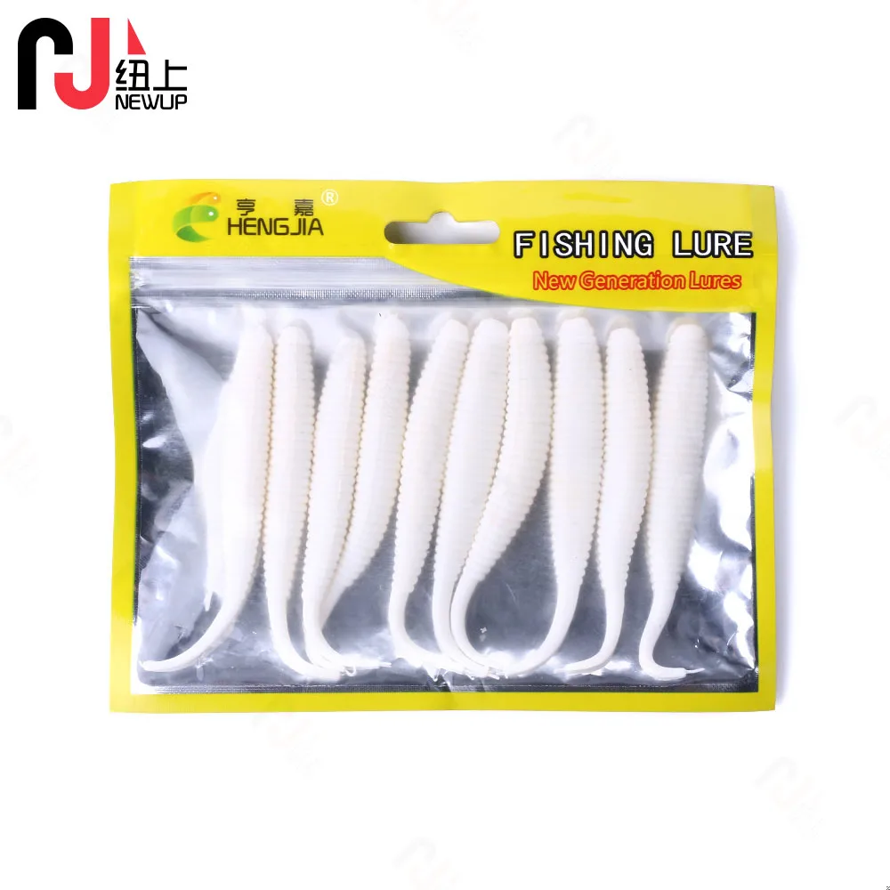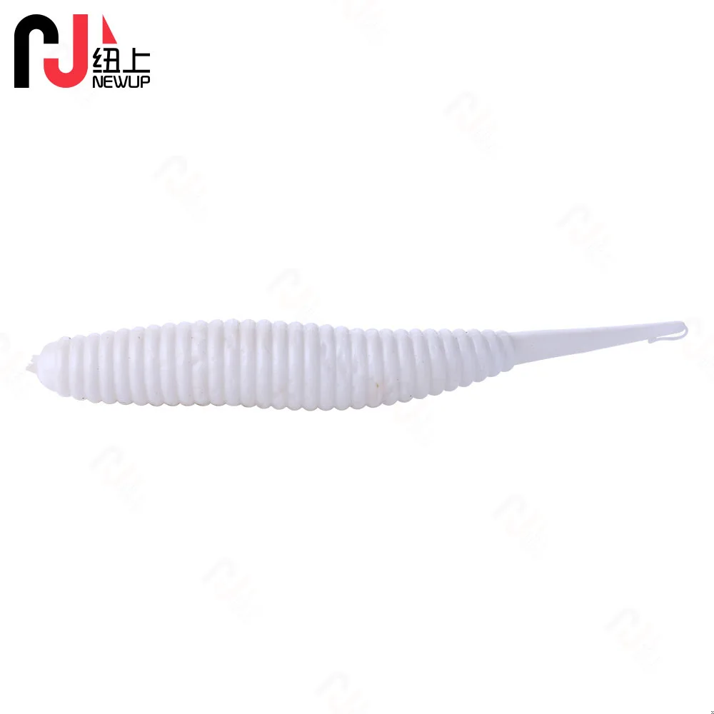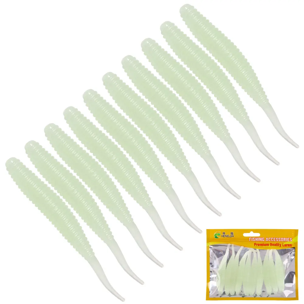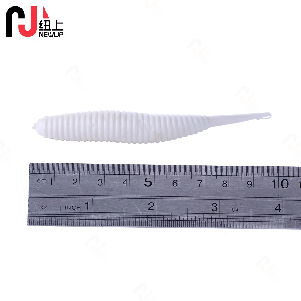 Nuevo Señuelo de pesca de gusano Grub, 10 Uds., 8cm, 5,7g, señuelo de pesca de cola larga, cebo suave, Señuelos de goma suave maggot blanco