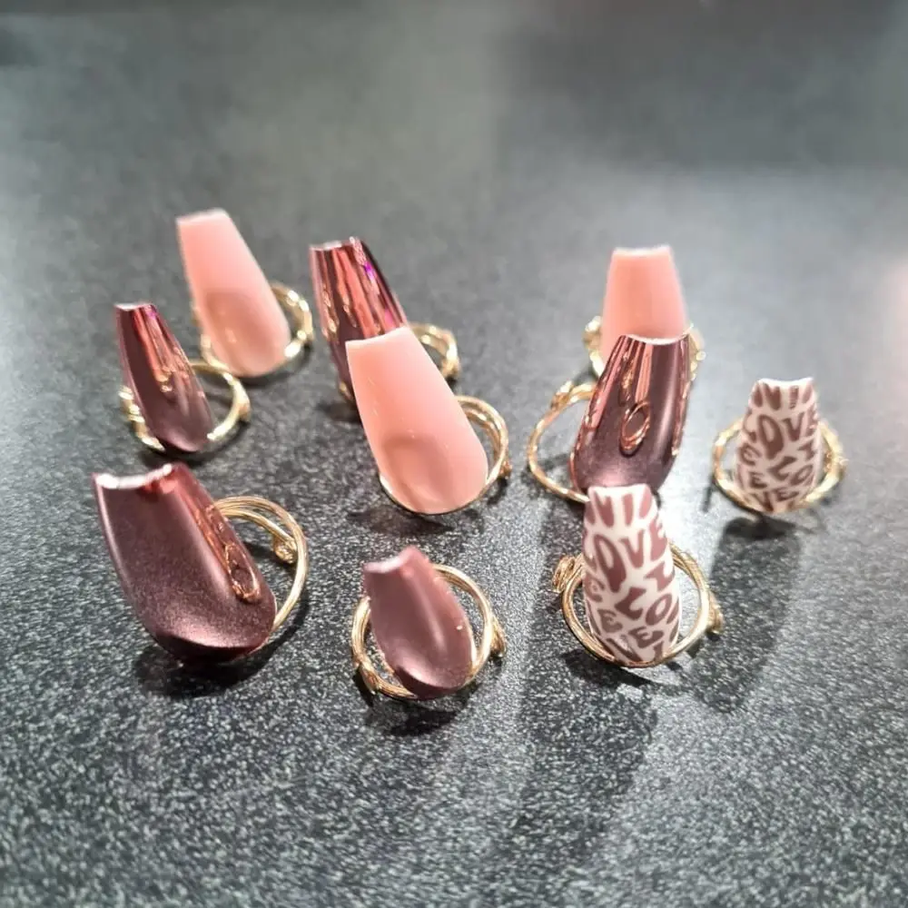 Product advantages:Nail rings. choose and change nail styles whenever I want without damaging my own nails or being committed to a particular style or even being committed to wearing nails all day. effortless removal when needed. Package Included: