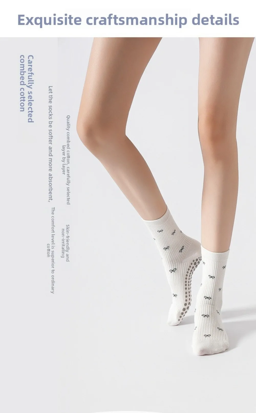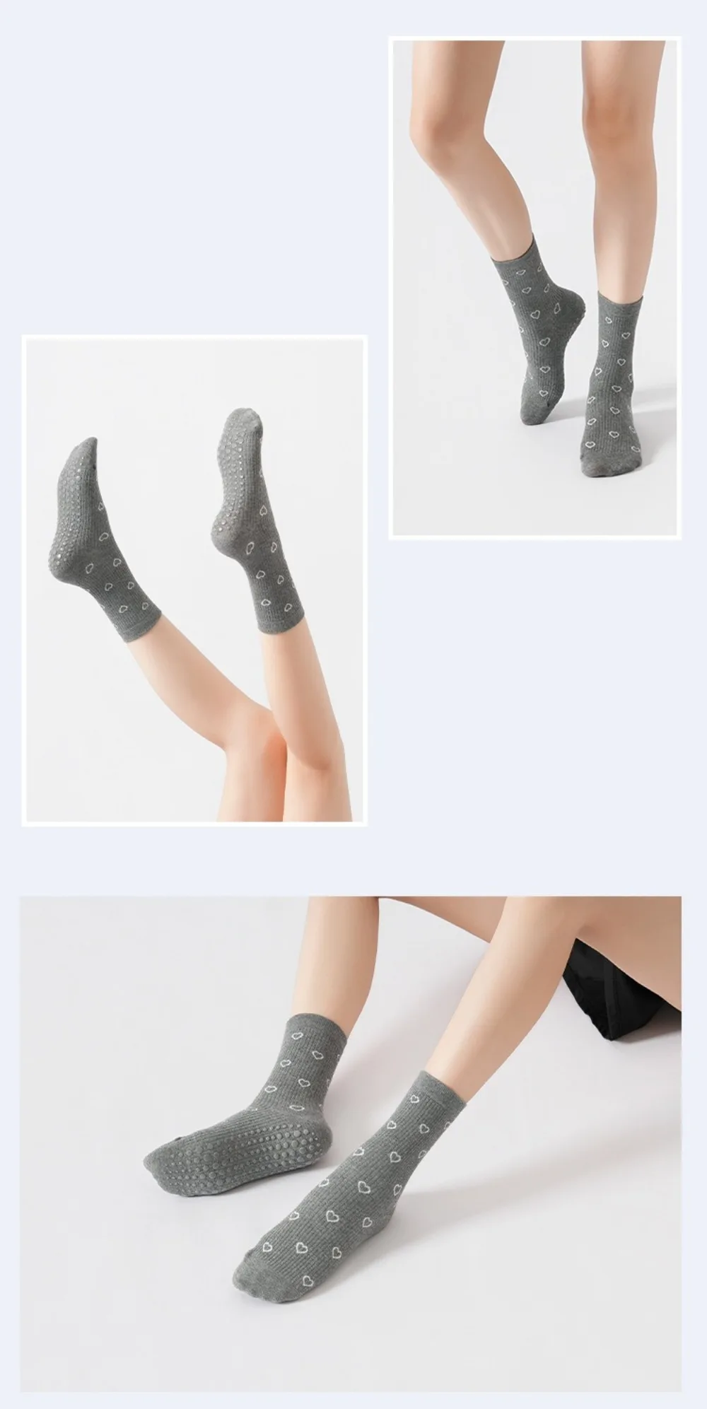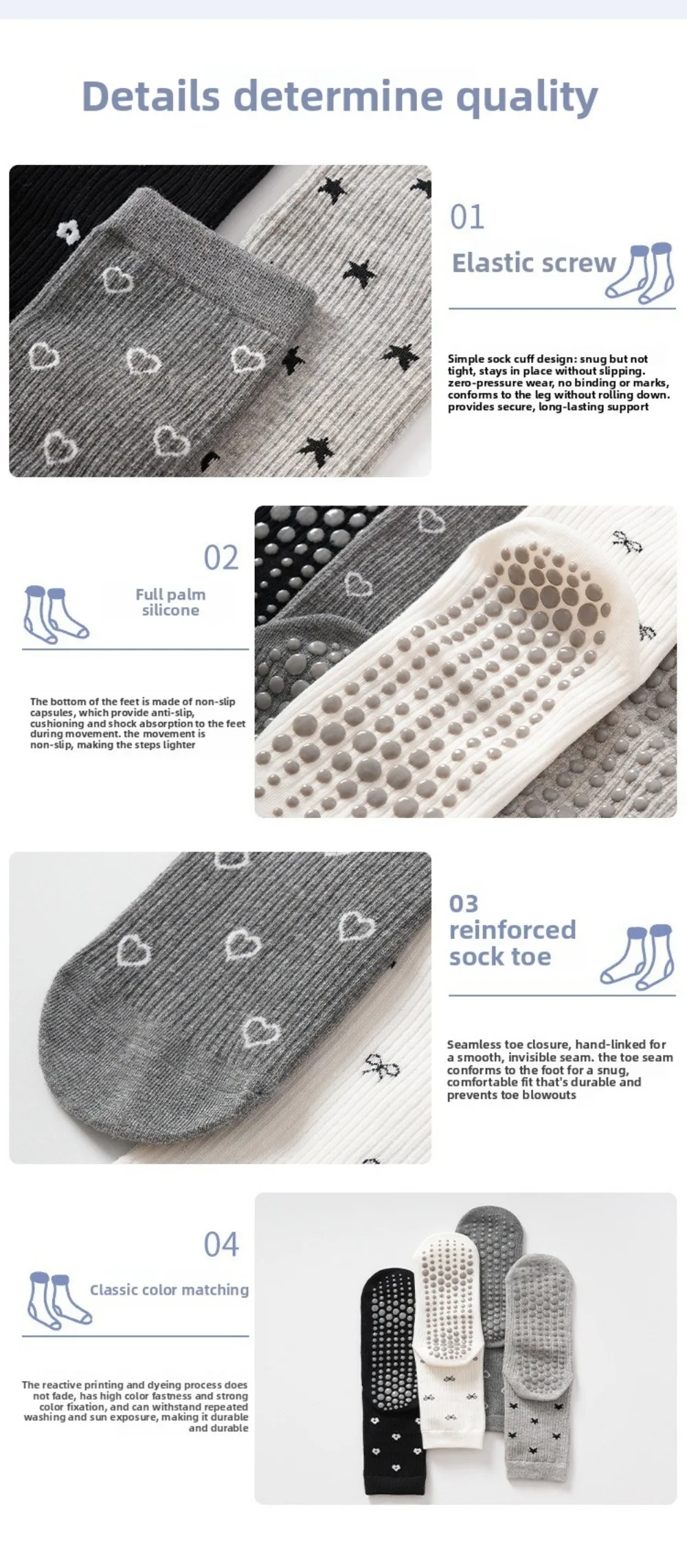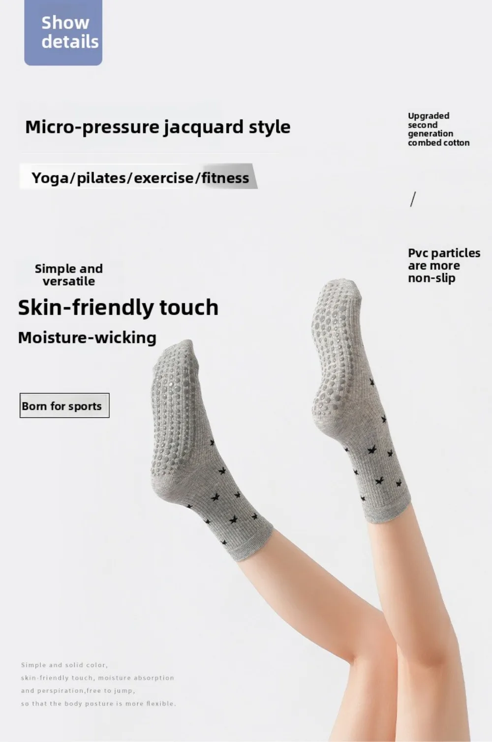 Nuevos calcetines de algodón para Yoga, calcetines antideslizantes de silicona para Pilates, diseño Jacquard, calcetines transpirables de tubo medio, calcetines deportivos para Fitness