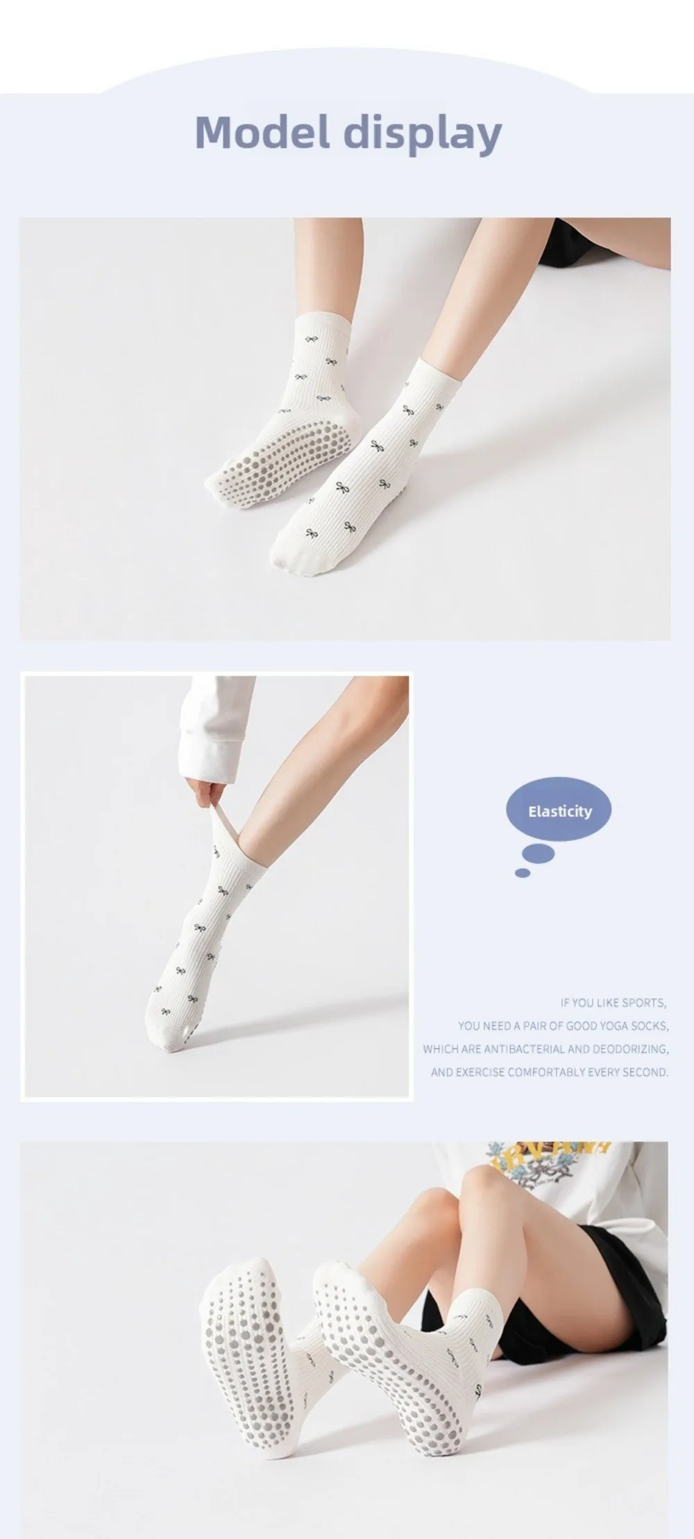 Nuevos calcetines de algodón para Yoga, calcetines antideslizantes de silicona para Pilates, diseño Jacquard, calcetines transpirables de tubo medio, calcetines deportivos para Fitness - imagen 1