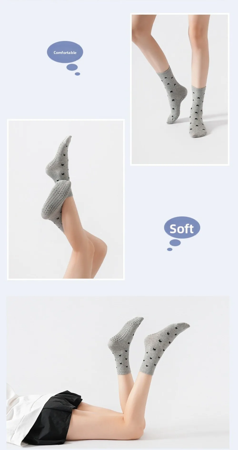 Nuevos calcetines de algodón para Yoga, calcetines antideslizantes de silicona para Pilates, diseño Jacquard, calcetines transpirables de tubo medio, calcetines deportivos para Fitness - imagen 3