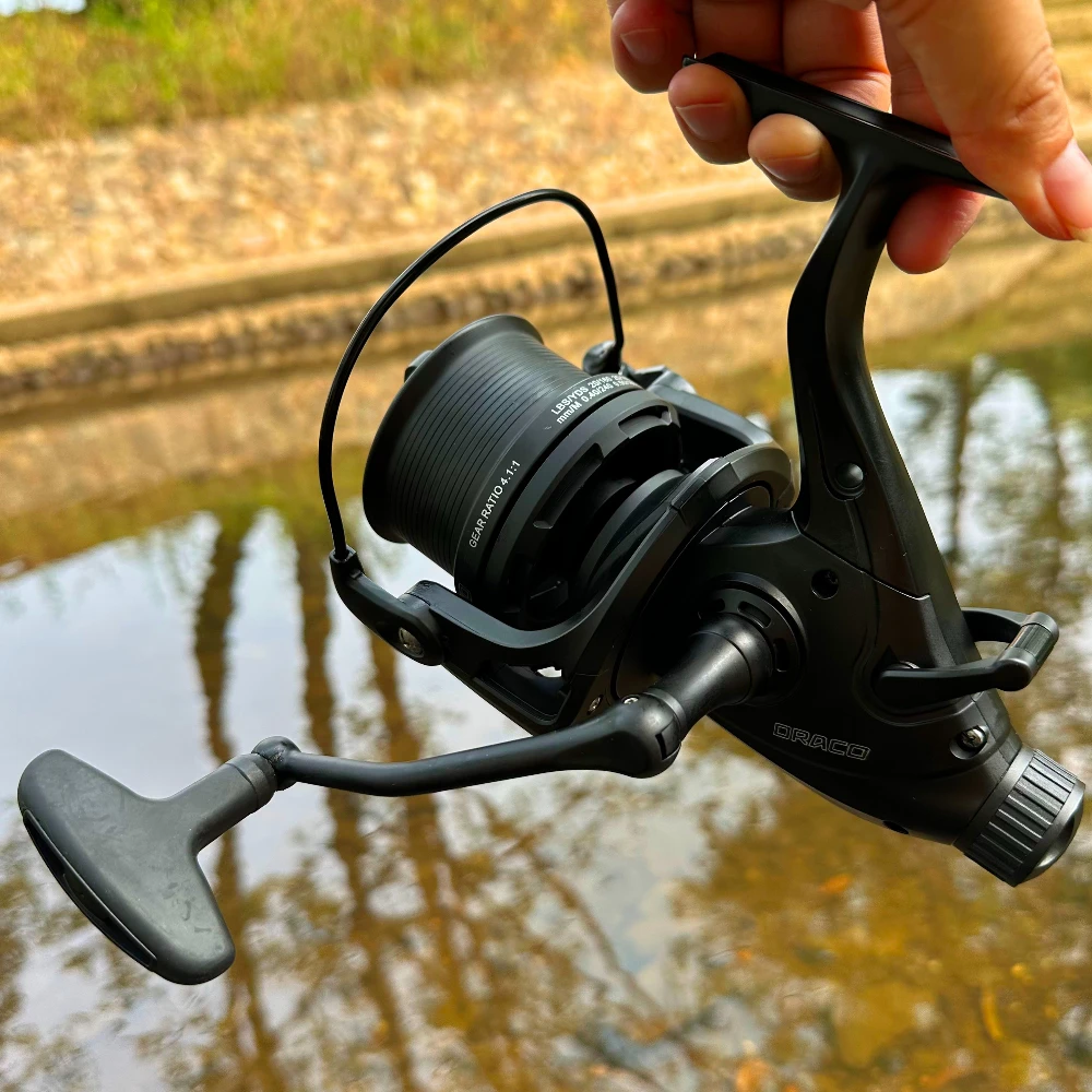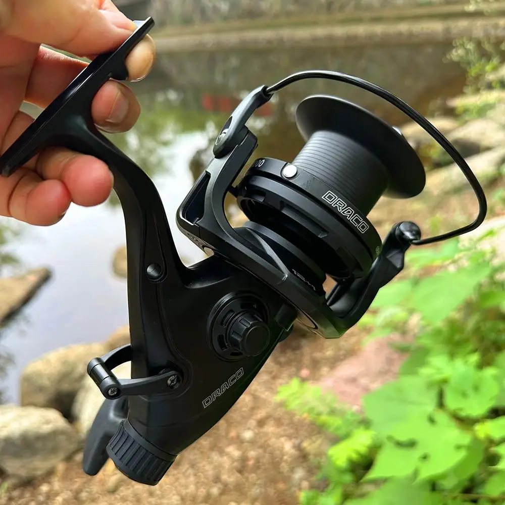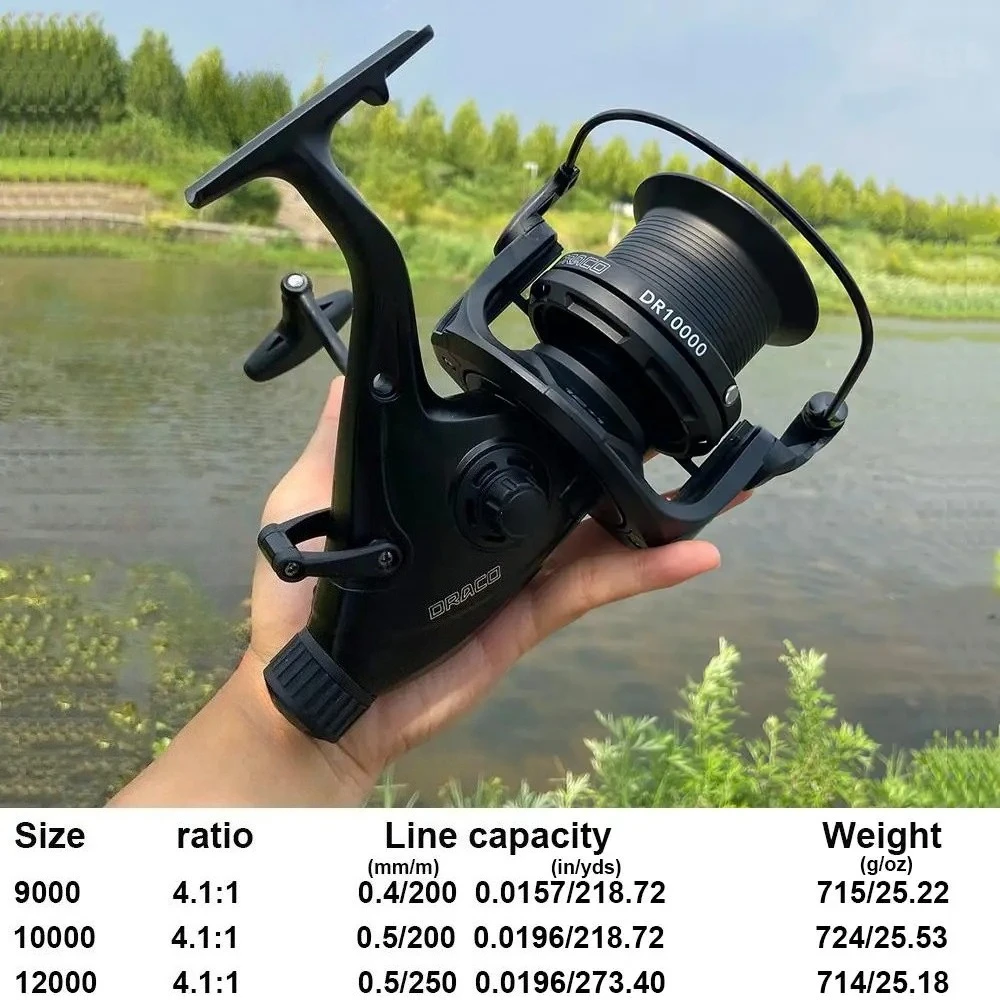 Carrete de pesca giratorio de carpa, carretes de fundición suave de doble freno, carretes de larga distancia serie 9000-12000 para todas las aguas