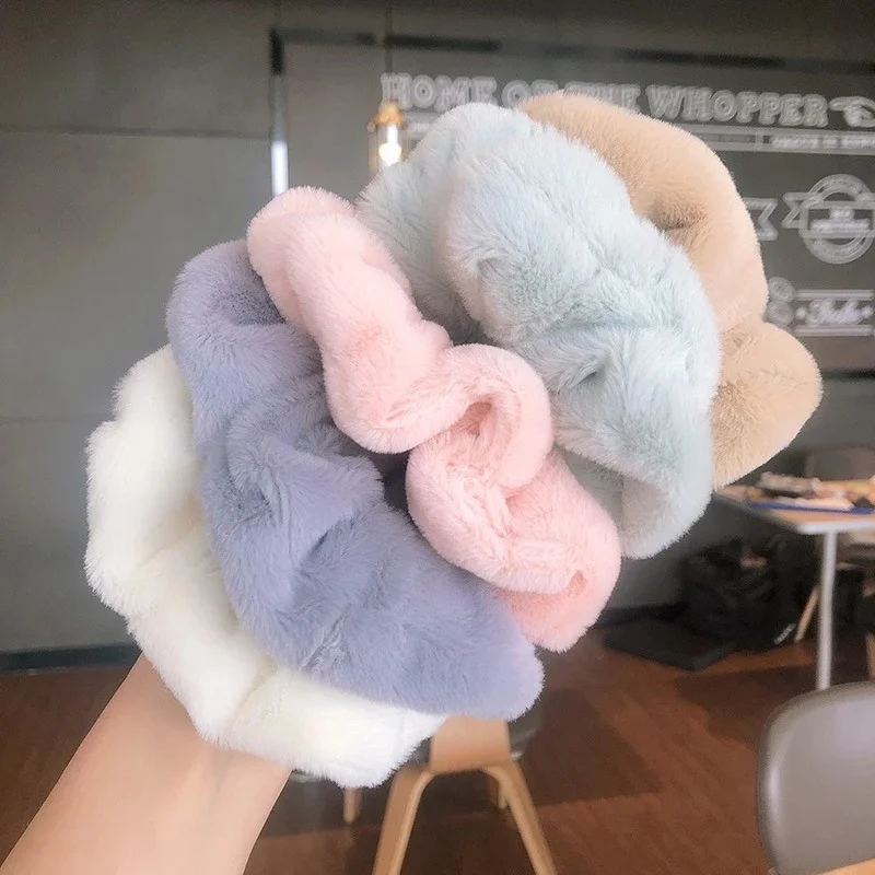 Nuevos coleteros suaves y cálidos de invierno para mujeres y niñas, bonitos accesorios de bucle de banda de goma Multicolor elásticos de felpa