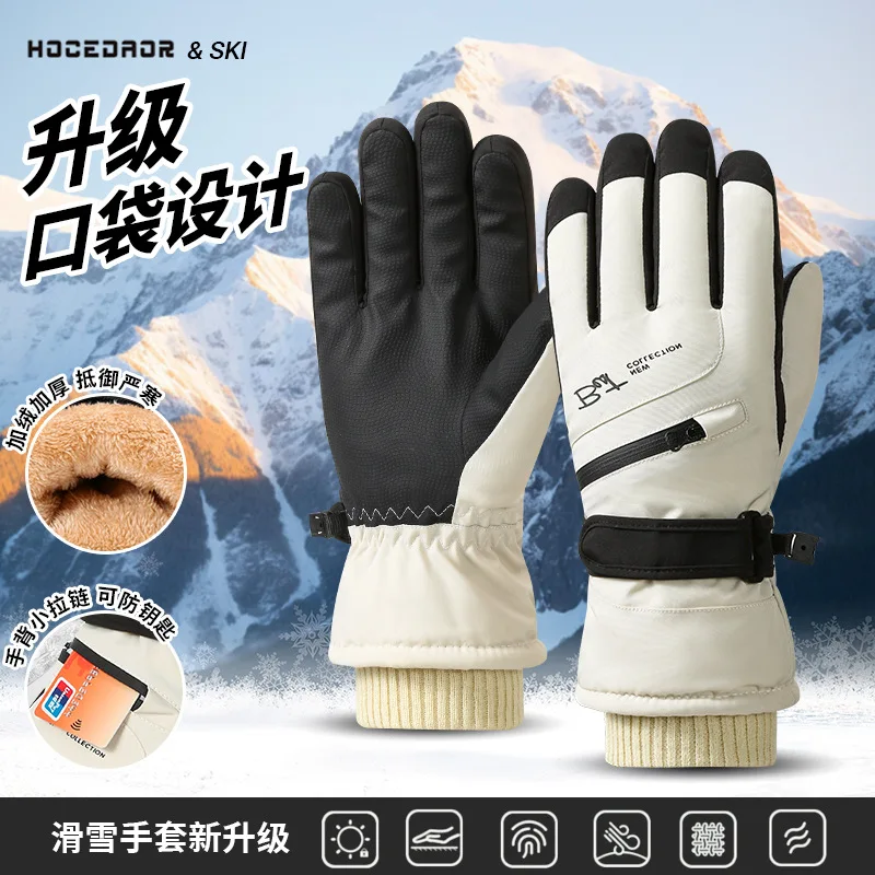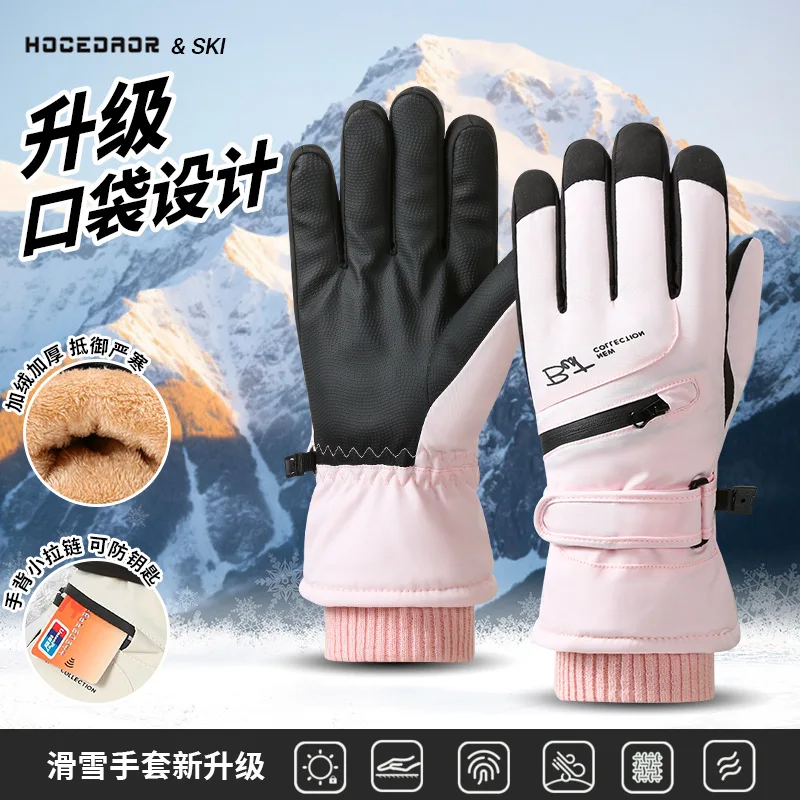 Nuevos guantes de esquí de invierno para hombres y mujeres, guantes de felpa gruesos impermeables, guantes cálidos para ciclismo, Camping, esquí, 1 par