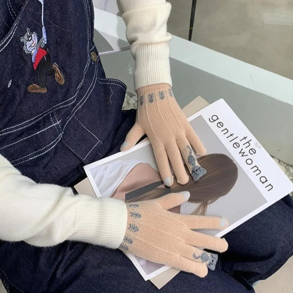 Característica: lindos gatos de dibujos animados, tejidos, pantalla táctil, gruesos, cálidos, suaves, elásticos.