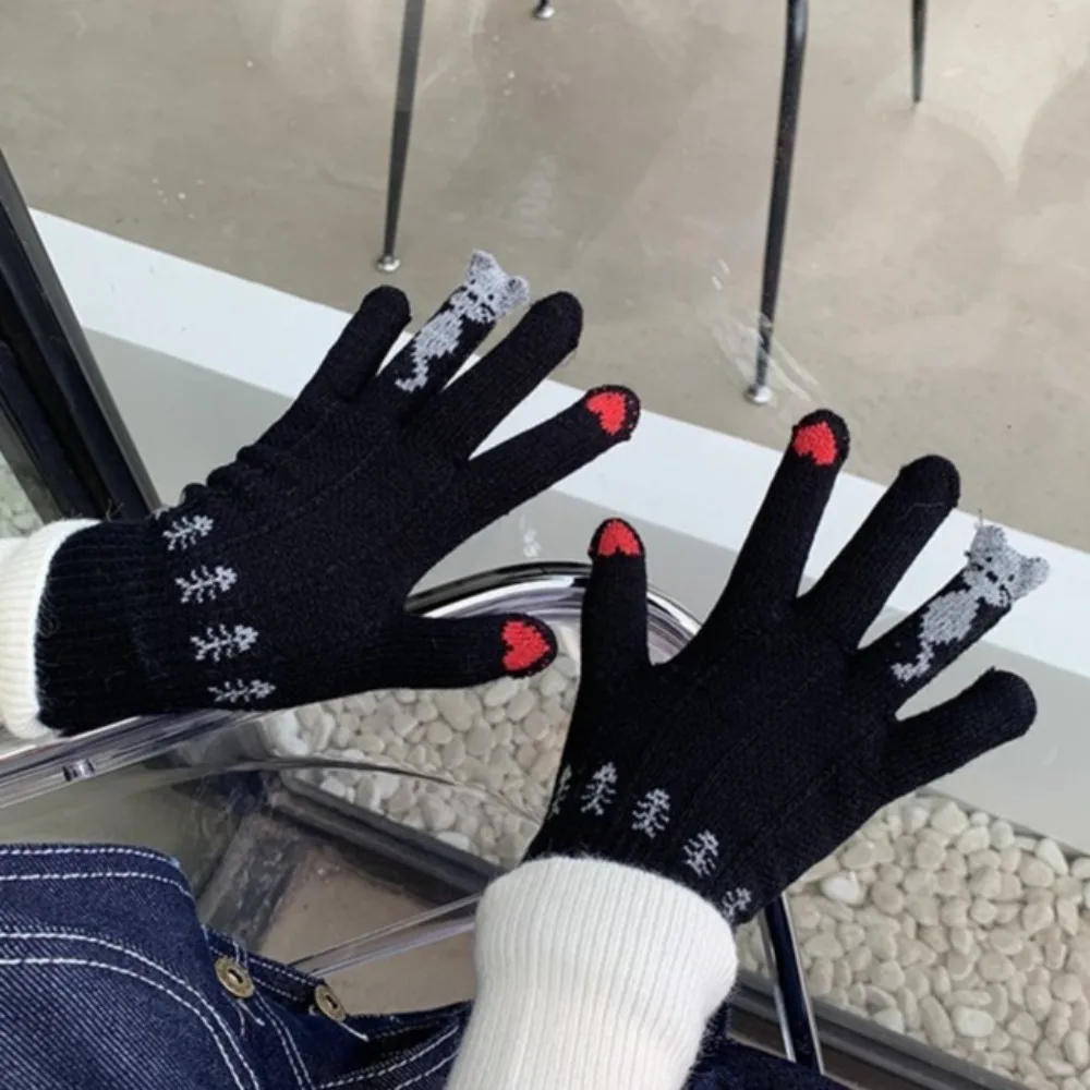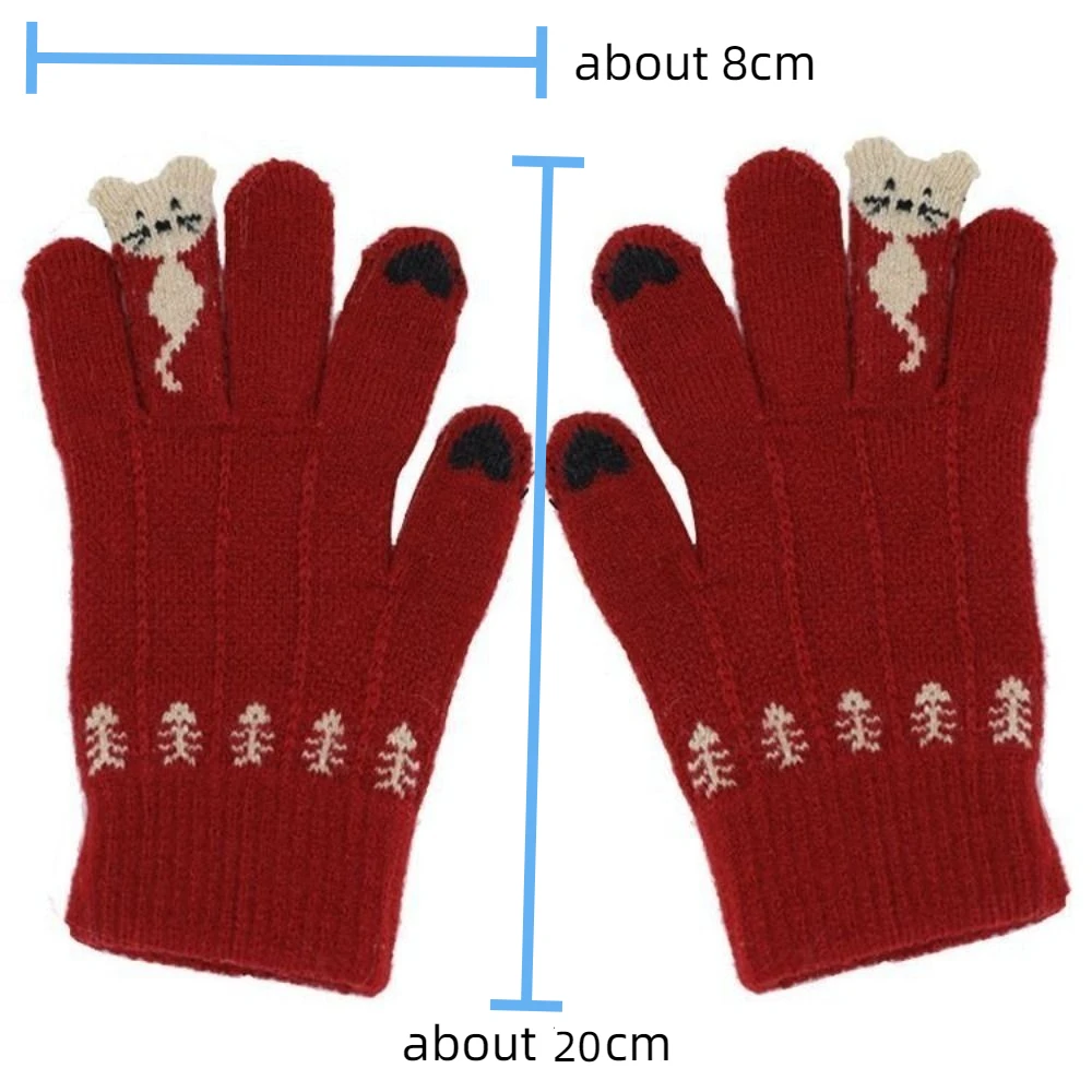 Feature:Cute Cartoon Cats ,Knitted,Touch Screen,Thicken Warm,Soft,Elastic